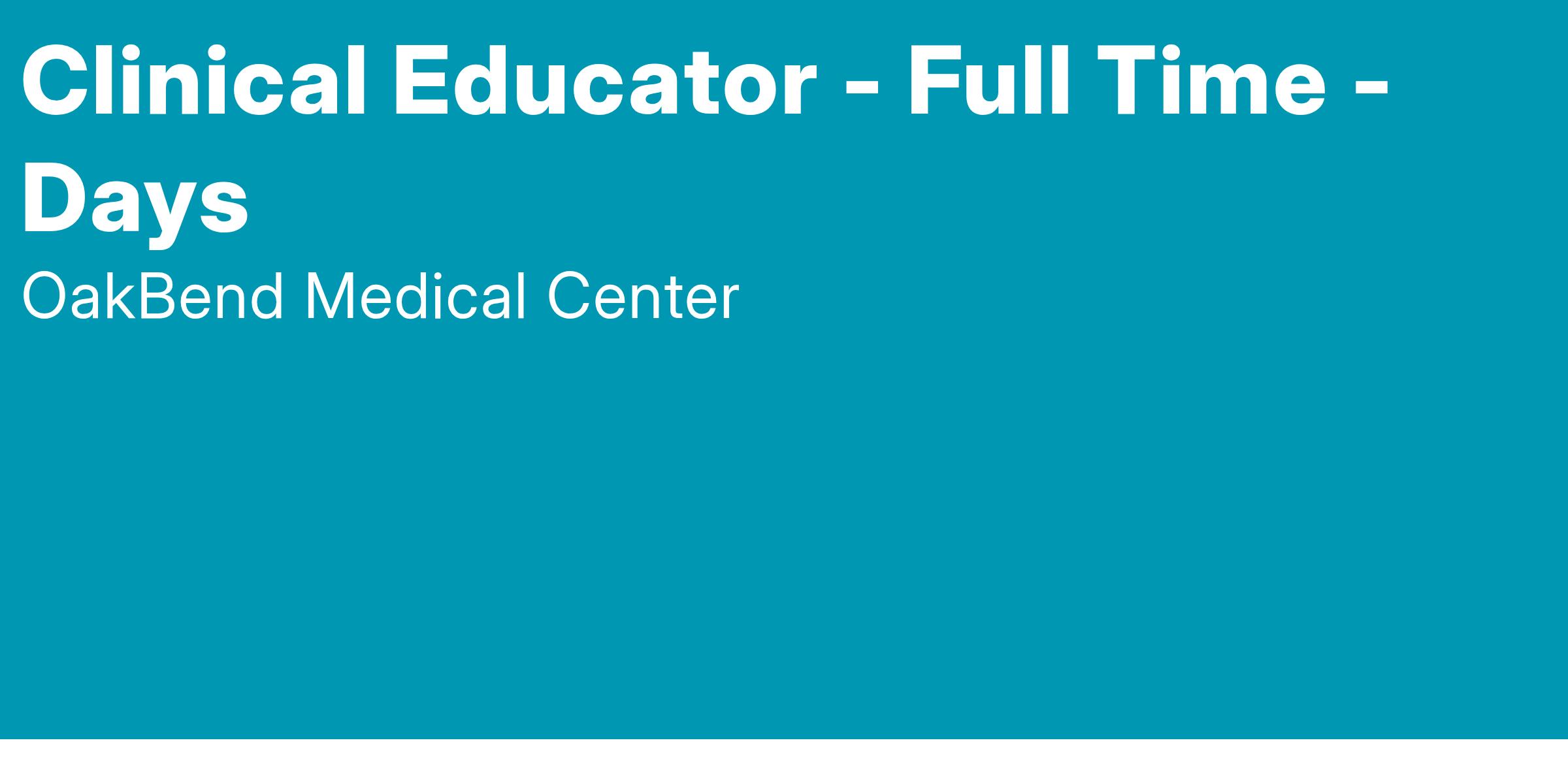 The Clinical Educator provides continuing education support for nursing and aillied health professionals. Provides initial and ongoing orientation and training to Nursing Services staff. Assists with hospital competency assessment and performance improvement activities.