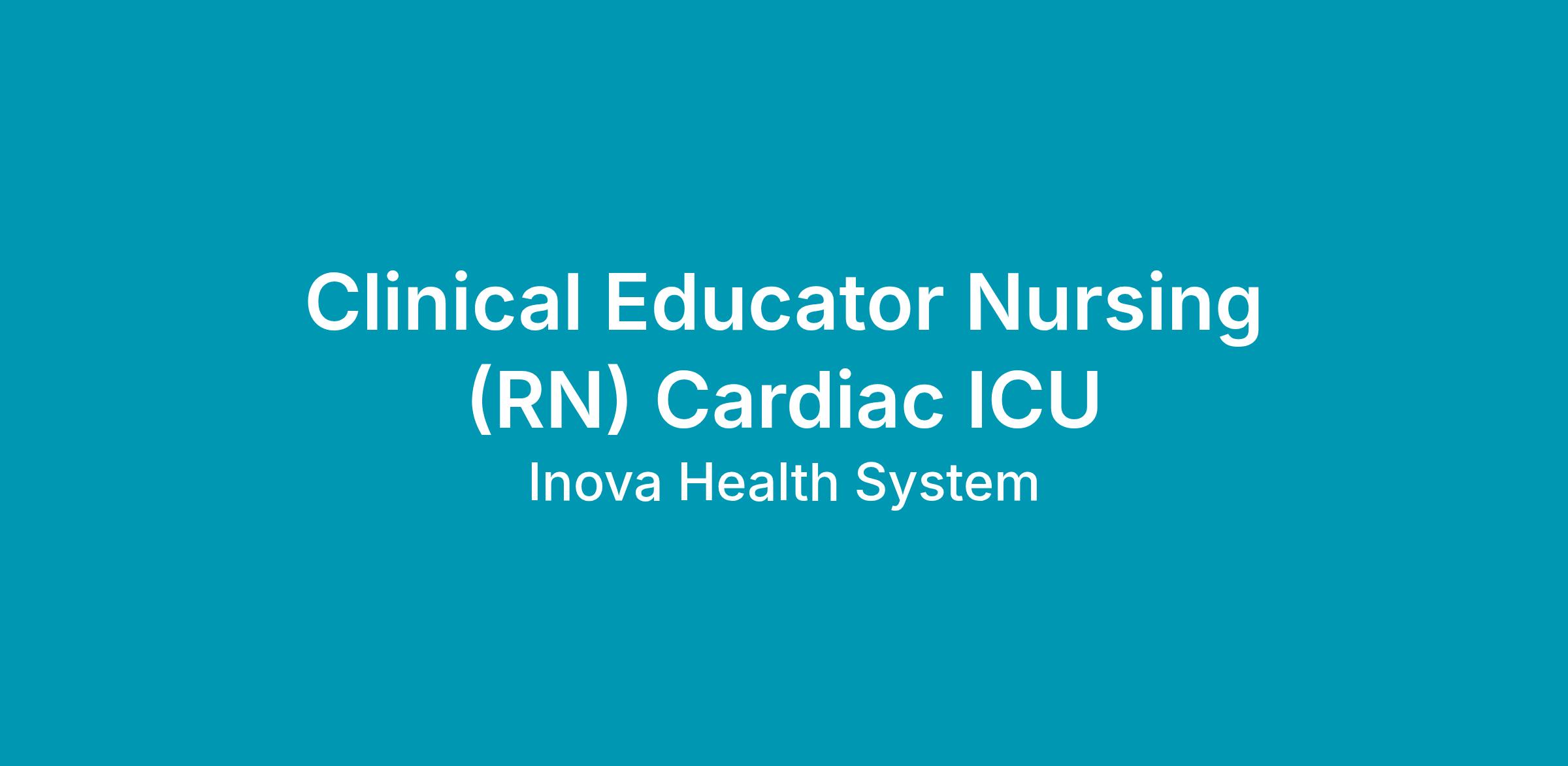 Inova Fairfax Medical Campus is looking for an RN Clinical Educator Nursing to work with the Cardiac Intensive Care Unit (CICU).