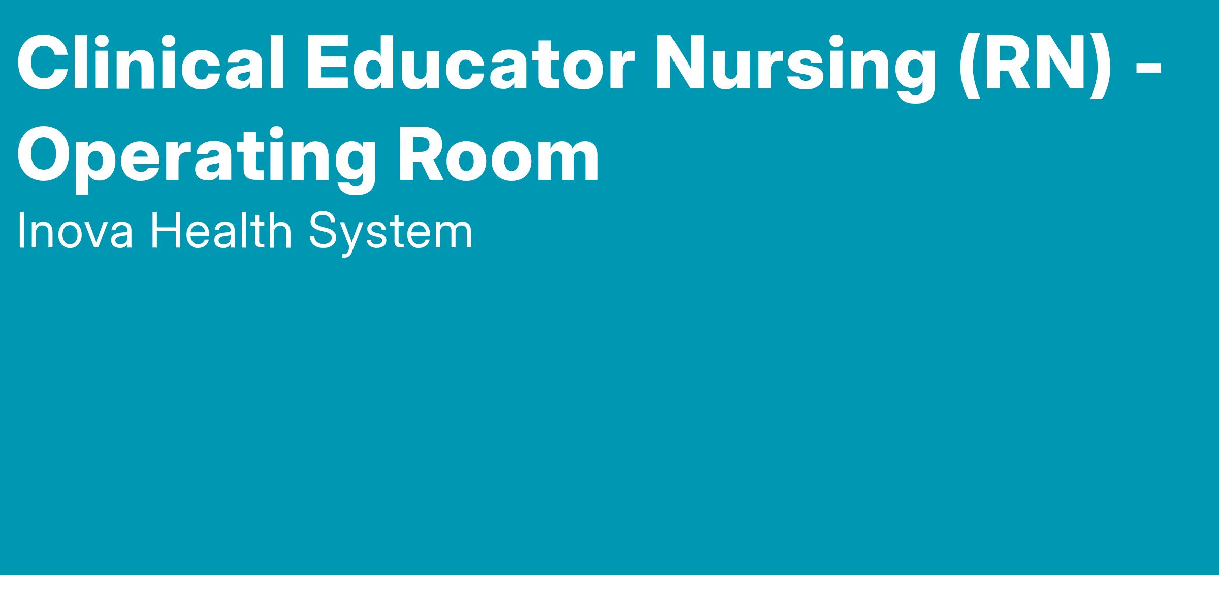 Inova Mount Vernon Hospital has an opening for an experienced Operating Room Nurse Educator. Experience with programs across the Perioperative Services spectrum for staff to achieve patient care and outcome standards is highly desired. This is a Monday-Friday position (exempt role and day shift schedule).