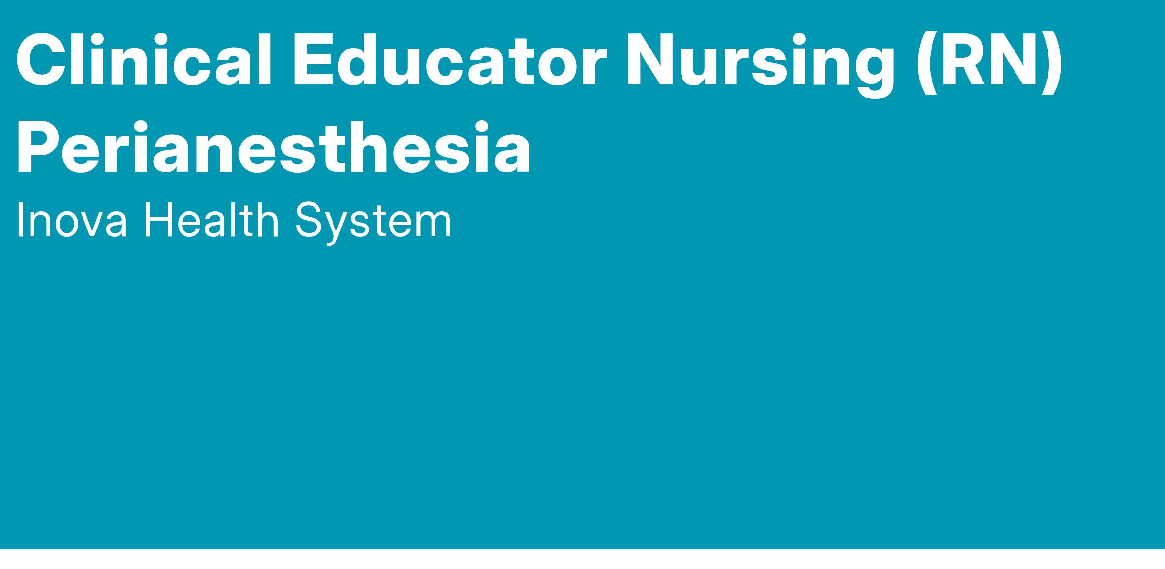 Inova Nursing Professional Development Department is looking for a RN Clinical Educator to work with our Perianesthesia (PACU) and GE procedural team supporting RN team members. This role is full-time, M-F. Relocation assistance eligible.