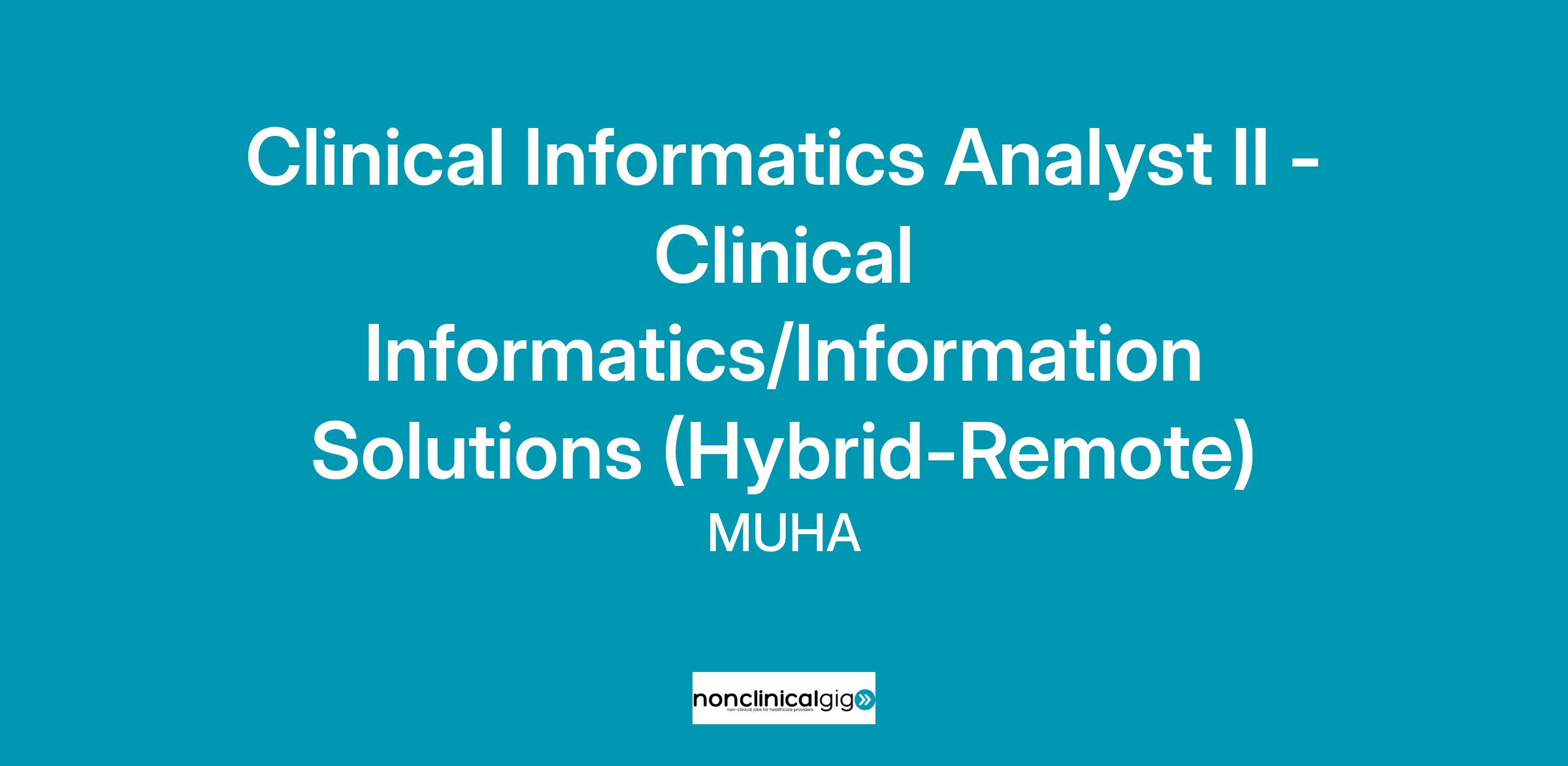 The Clinical Informatics Analyst II reports to the Manager of Clinical Informatics. Under limited supervision, the Clinical Informatics Analyst II works collaboratively with end users and Information Solutions -IS) to design and deploy clinical information technologies that support the delivery of safe, and efficient patient care for large strategic initiative. This role performs intermediate to moderately complex level of technical and analytical work to support clinical information systems. This position serves as a mentor to junior staff members, facilitating the acquisition of informatics skills. This role collaborates with Senior Informatics leaders, other team members, and the clinical enterprise in the planning, design, development, training, implementation, and project management of Information Systems.
