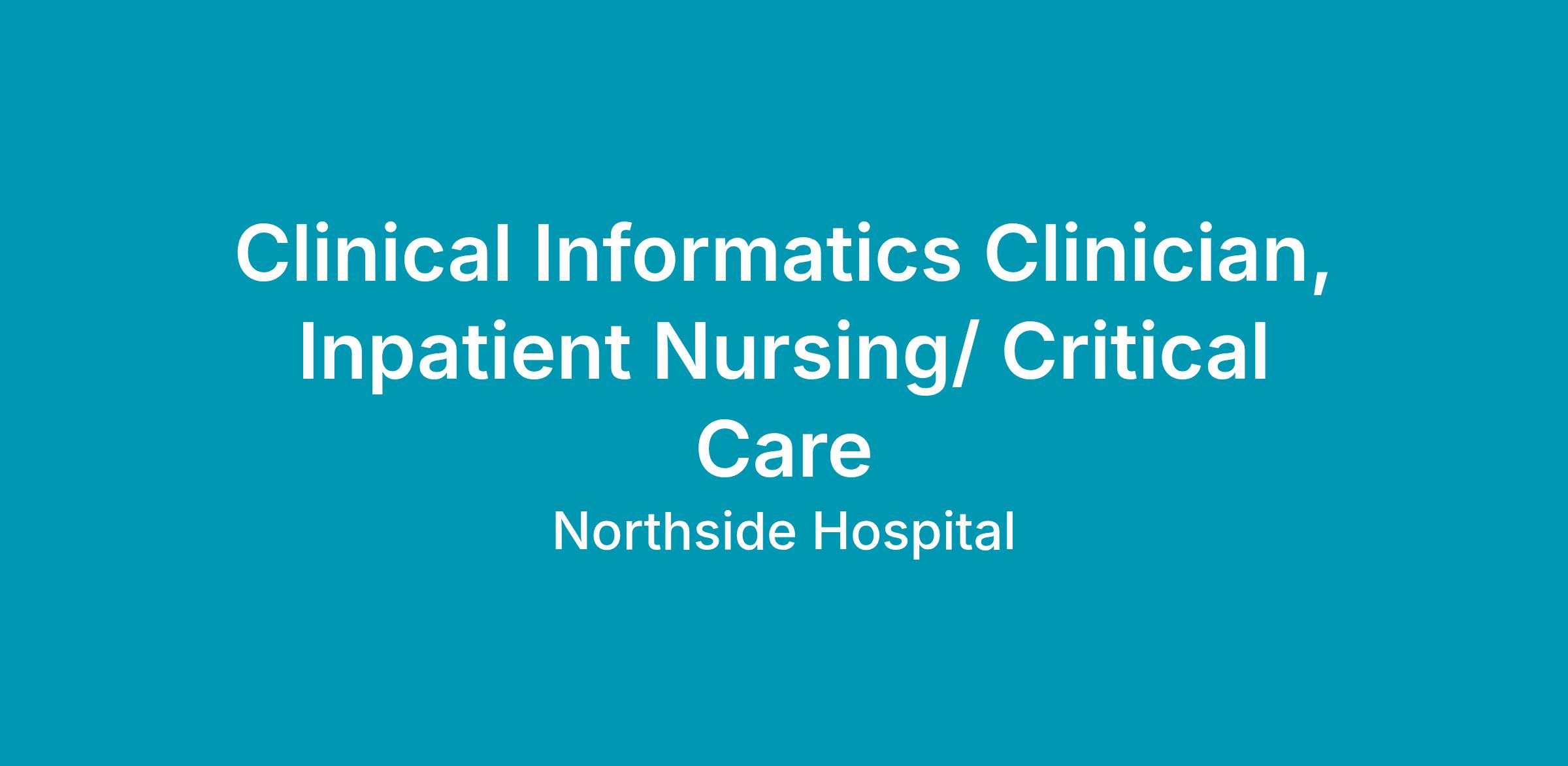 Northside Hospital is award-winning, state-of-the-art, and continually growing. Constantly expanding the quality and reach of our care to our patients and communities creates even more opportunity for the best healthcare professionals in Atlanta and beyond. Discover all the possibilities of a career at Northside today.