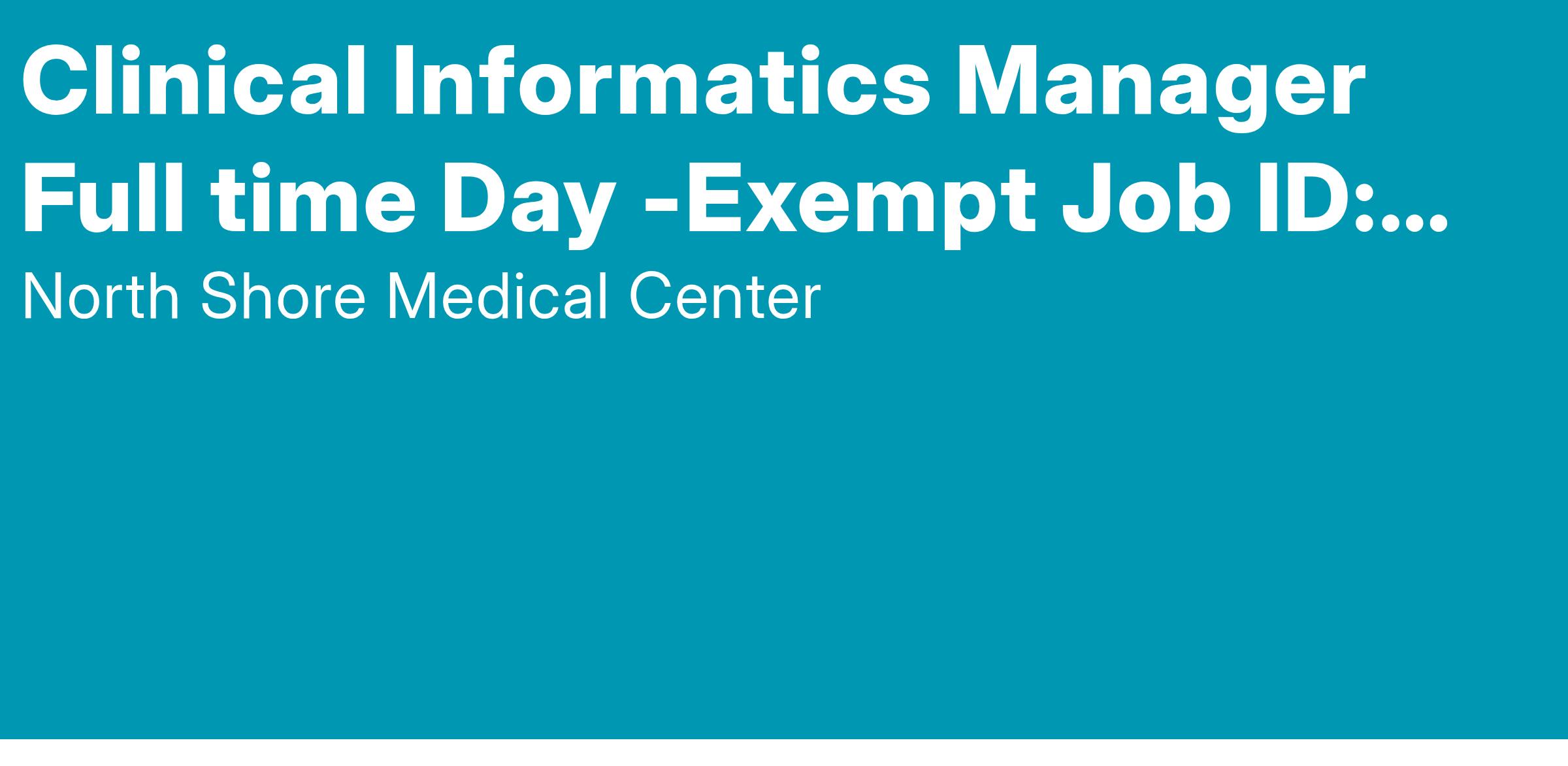 Clinical Informatics Manager Full time Day -Exempt Job ID: 1455703