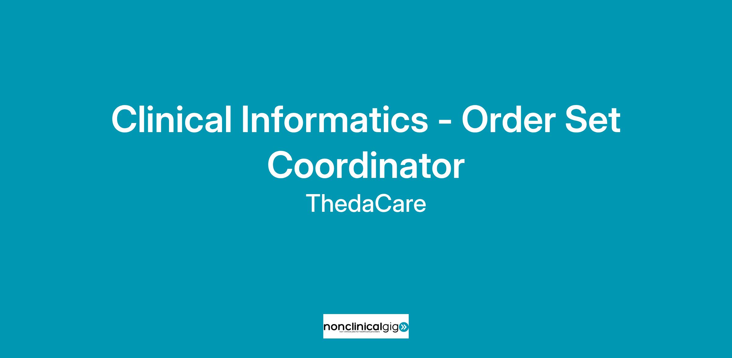 The Clinical Informatics – Order Set Coordinator plays a pivotal role in optimizing clinical workflows and enhancing patient care through the development, implementation, and maintenance of evidence-based order sets within ThedaCare’s electronic health record (EHR) system. This position bridges clinical practice and health IT, ensuring that order sets support safe, efficient, and standardized care delivery across the organization.