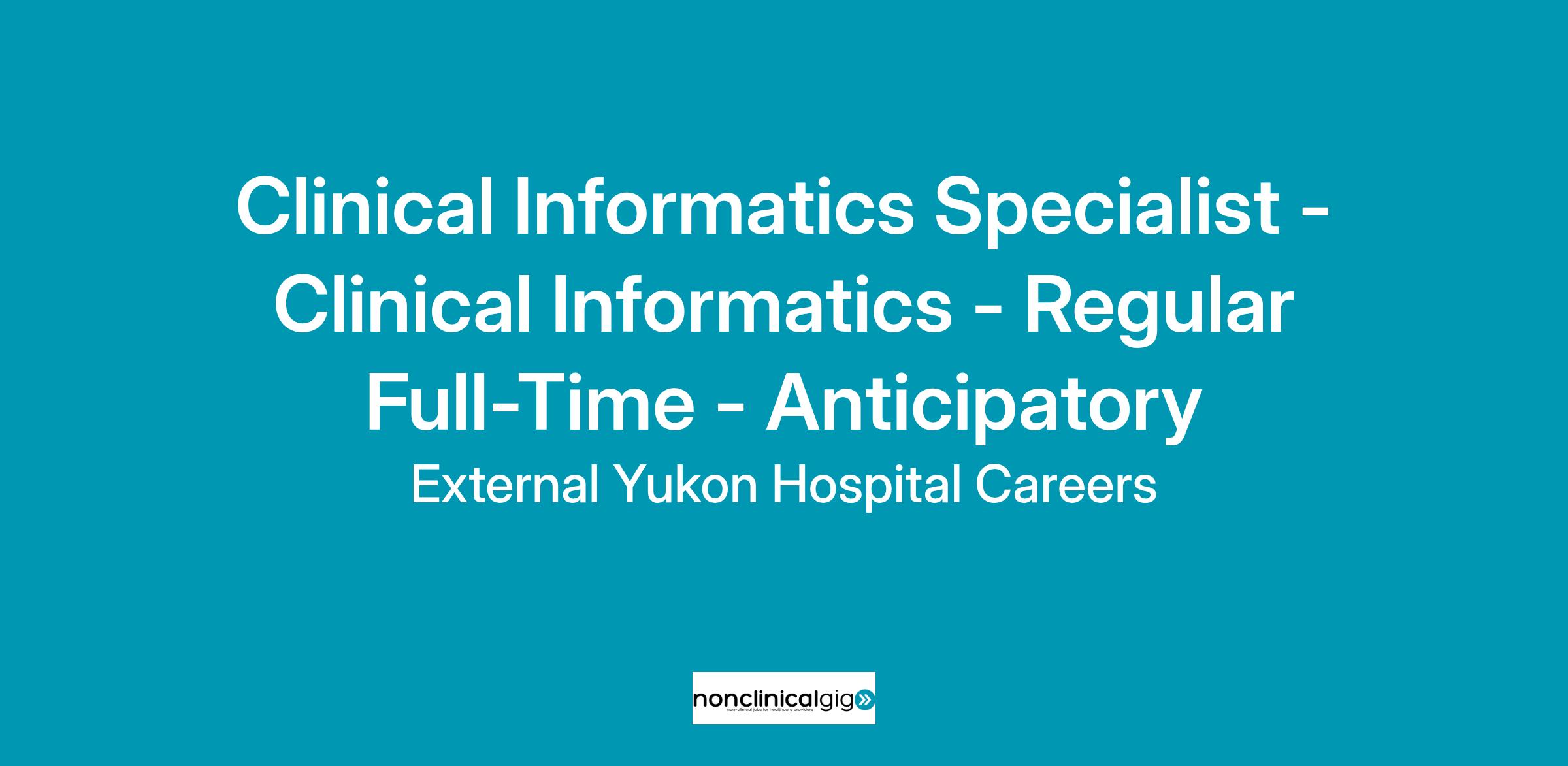 Reporting to the Manager, Clinical Informatics the incumbent is responsible for collecting, assessing, and analyzing user requirements, departmental and/or hospital work flow, and supports process re-design by using a variety of methodical processes and education to ensure systems meet the needs of the clinicians and organization to deliver excellent quality care. In accordance with established vision and values of the organization, the Clinical Informatics Specialist evaluates, plans, implements, tests, maintains, and supports complex, integrated information systems which support clinical and health information needs throughout Yukon Hospital Corporation.