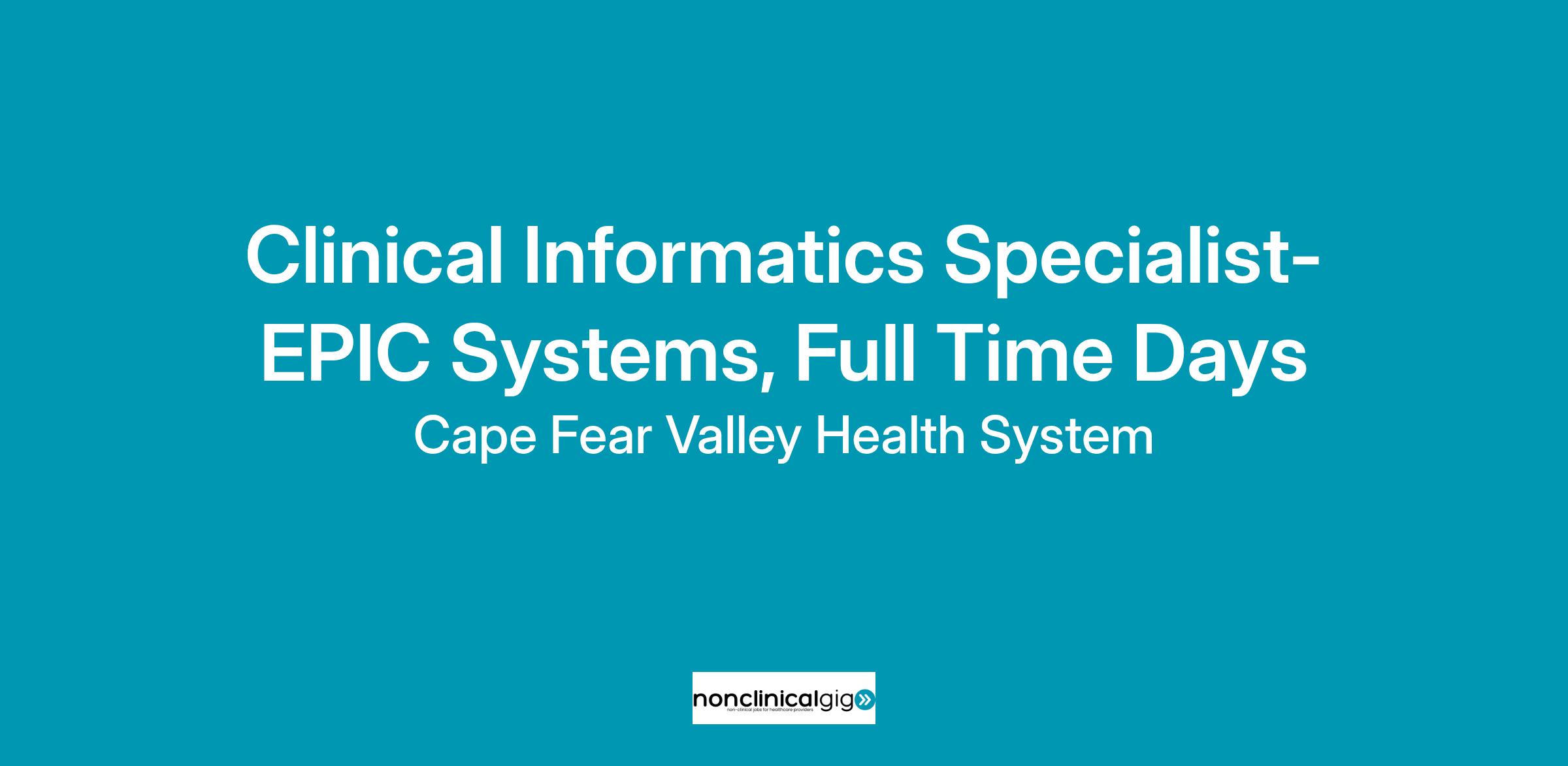 Epic Clinical Informatics certification required or must obtain within 6 months of hire.