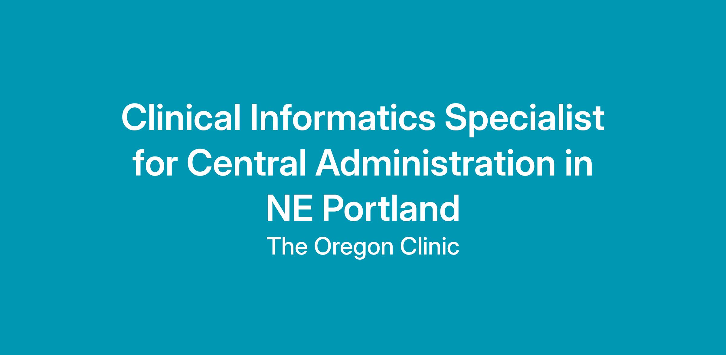 Join us at The Oregon Clinic as a full-time Clinical Informatics Specialist (Hybrid/Remote). Must live in the Portland or SW Washington area, as travel to TOC clinic locations will be required. Work alongside a collaborative team of patient-focused colleagues in our thriving Central Administration office.