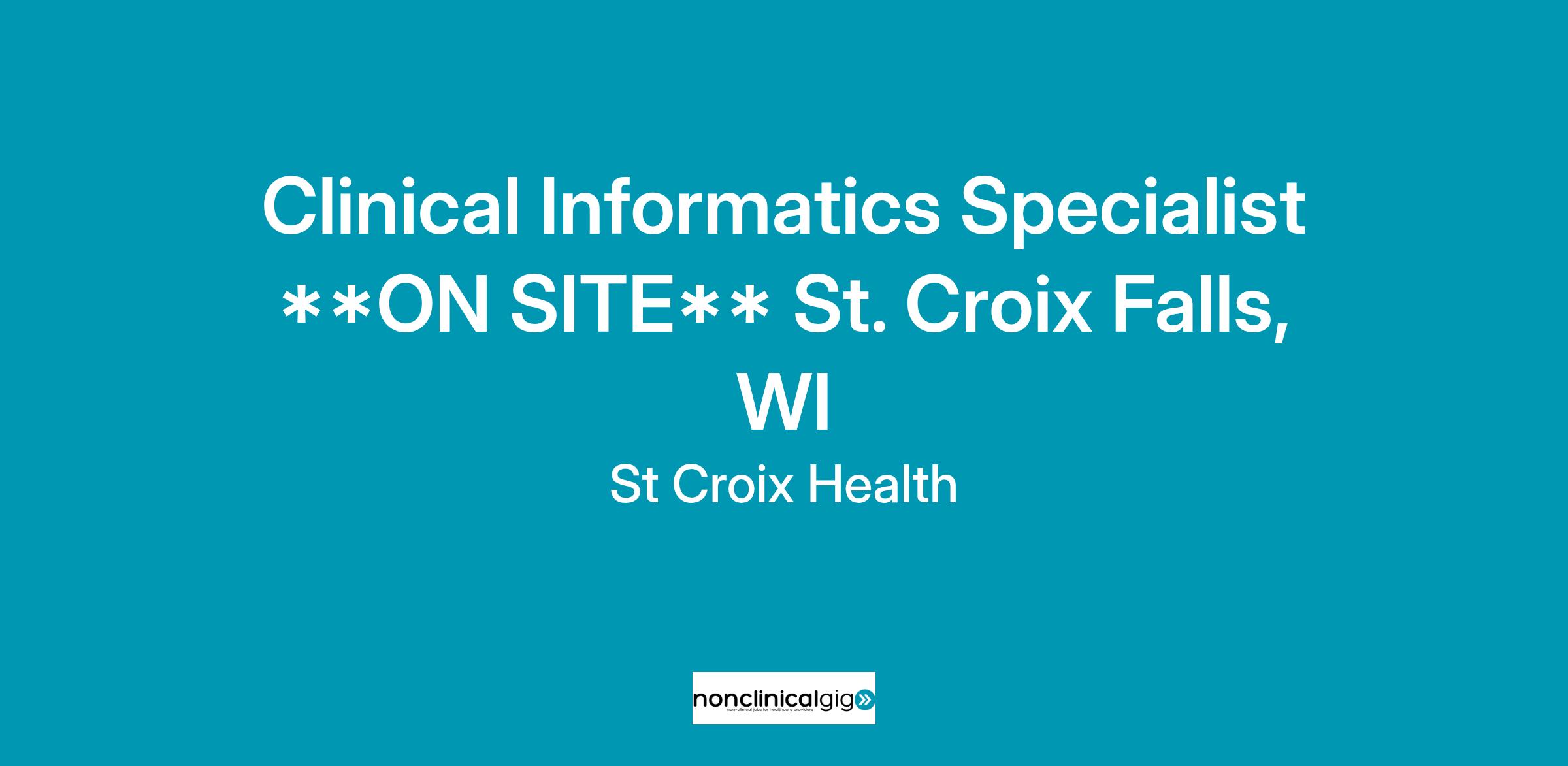 St Croix Regional Medical Center is currently seeking a Clinical Informatics Specialist. Working shifts include Monday-Friday, standard business hours. This full-time position will be based in St. Croix Falls, Wisconsin with periodic travel to community clinics as needed.