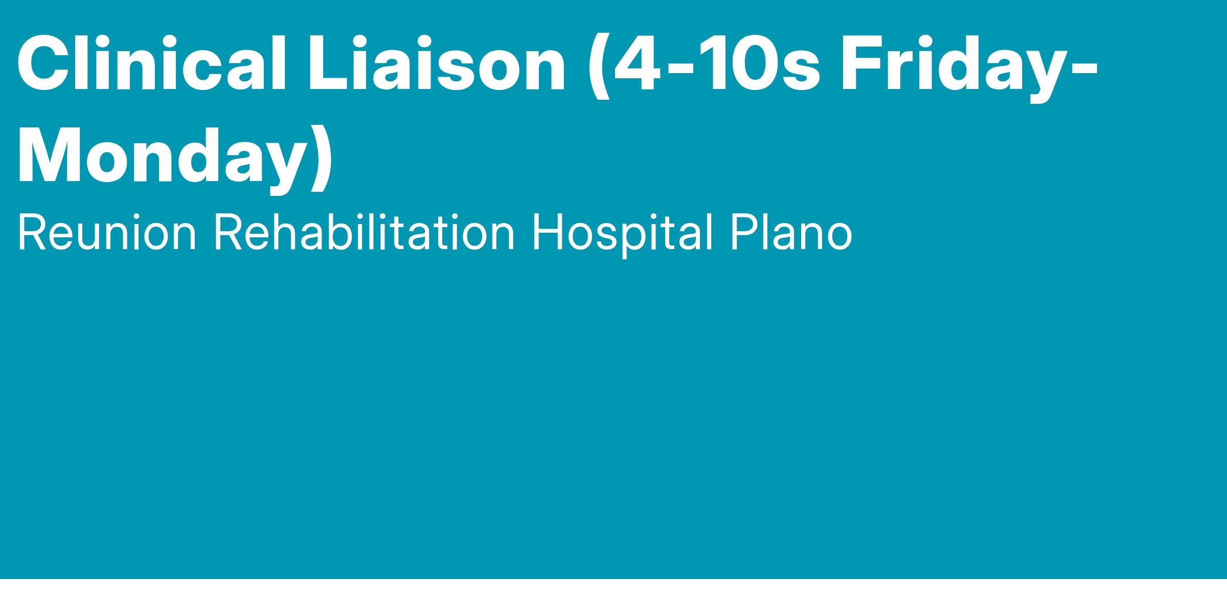 Reunion Rehabilitation Hospital Plano is an EEO employer - M/F/Vets/Disabled