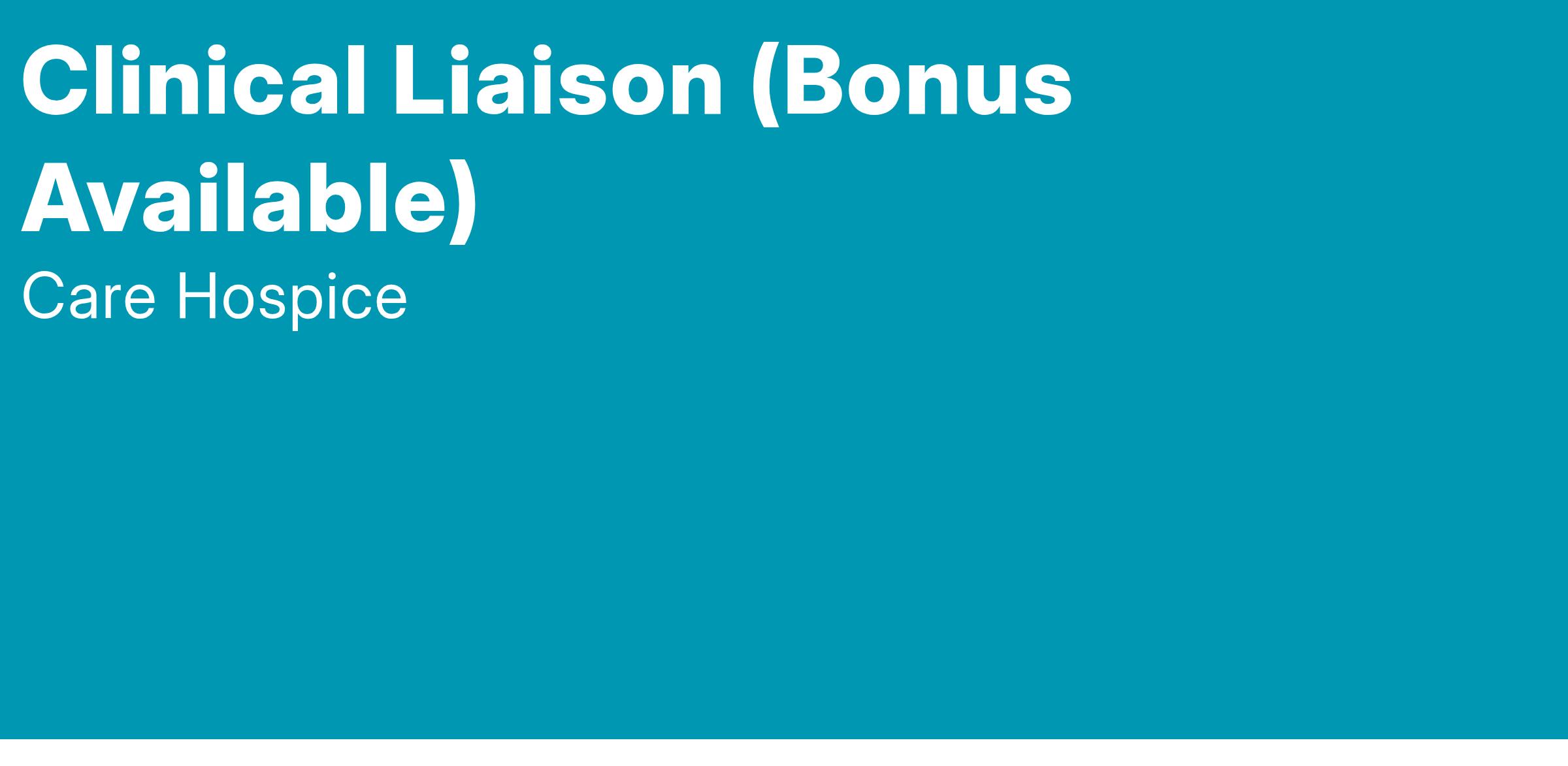 The Clinical Liaison is primarily responsible for hospital and medical facility-based outreach to identify new referral sources and maintain on-going relationships that will increase census and preference for hospice services. Clinical Liaisons use their clinical knowledge, empathetic communication skills, and marketing abilities to initiate one-on-one dialog with referral sources, families, and prospective patients to help explain and educate on hospice services. Our Clinical Liaisons are hospice experts and serve as a resource to their referral sources to ensure extraordinary patient and customer service.