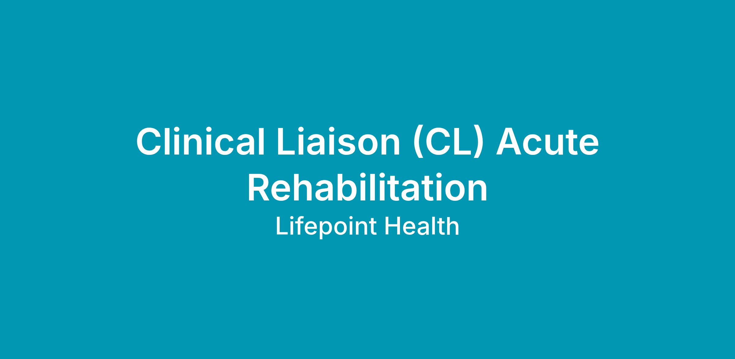 The Clinical Liaison is responsible for educating the community on acute rehabilitation services, building relationships with referral sources, and developing business in alignment with the rehabilitation program's strategic goals.