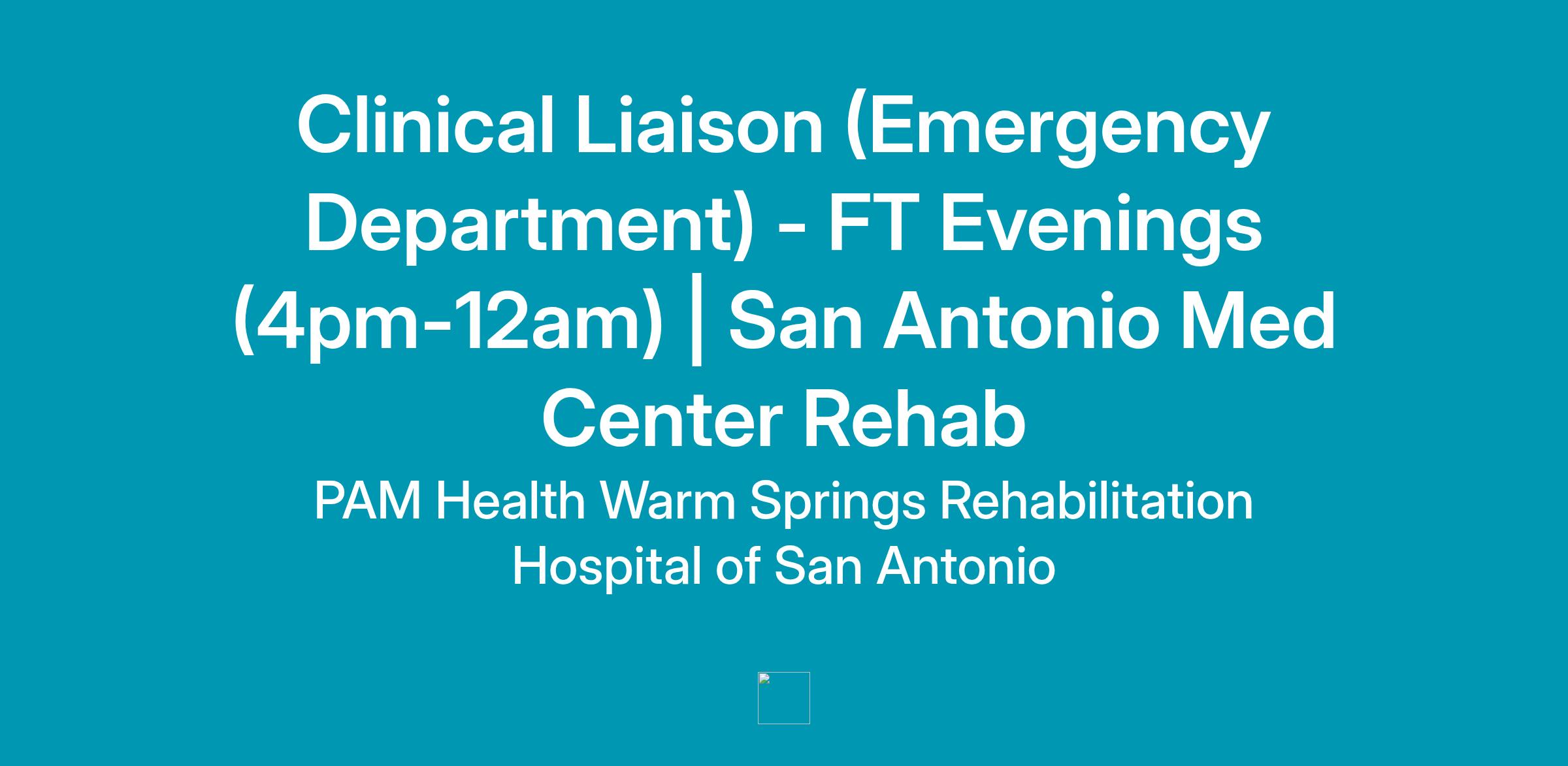 Clinical Liaison (Emergency Department) - FT Evenings (4pm-12am) | San Antonio Med Center Rehab