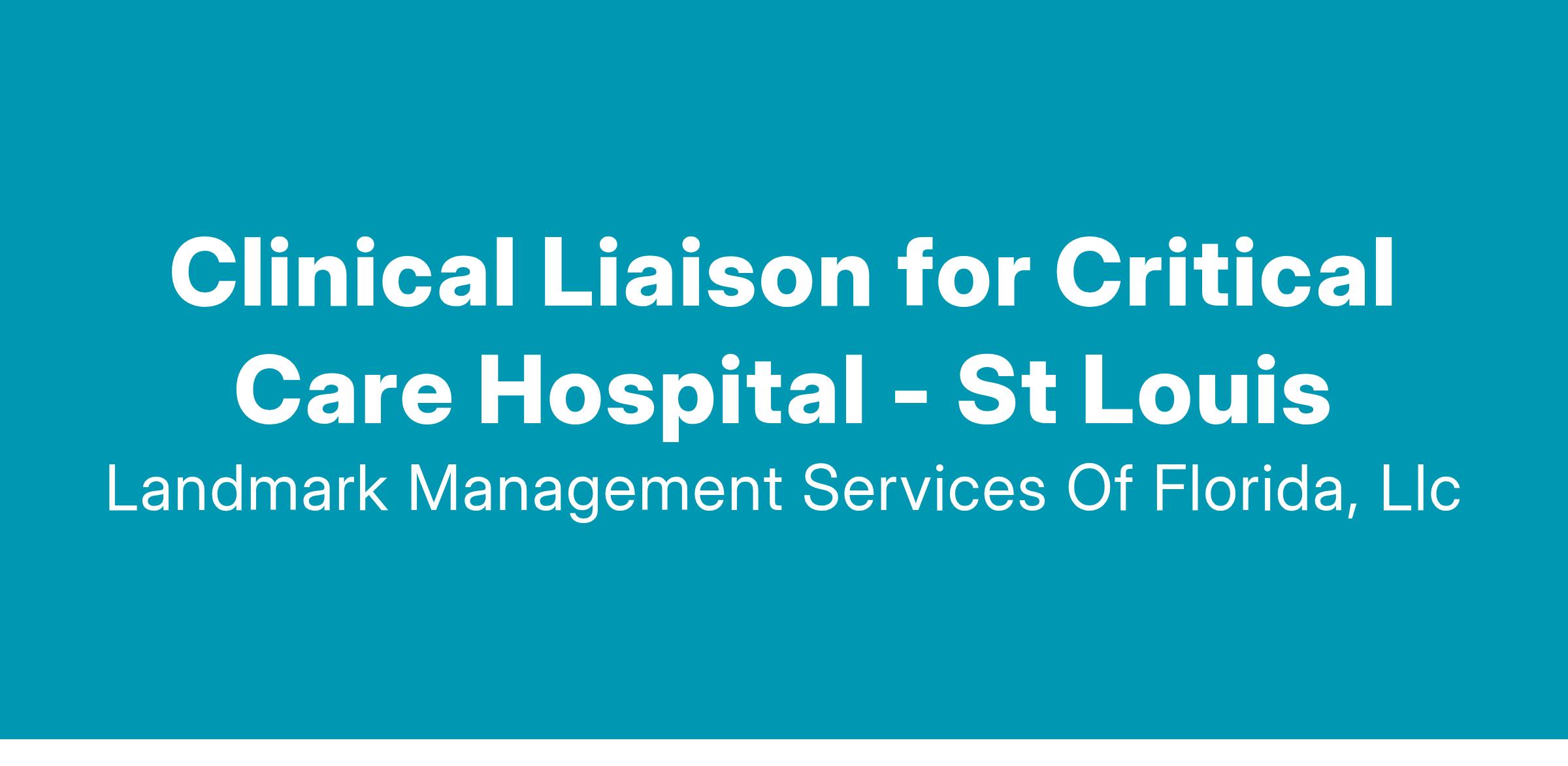 Our three Missouri-based Critical Care/Long-Term Acute hospitals are expanding and adding a team member in the St. Louis region to capitalize on referrals from the metro area. The ideal candidate will possess energy and drive, experience in Healthcare and/or Sales, strong professional relationships, and a desire to utilize their passion for helping others by educating the community about our services as a Business Development Clinical Liaison.