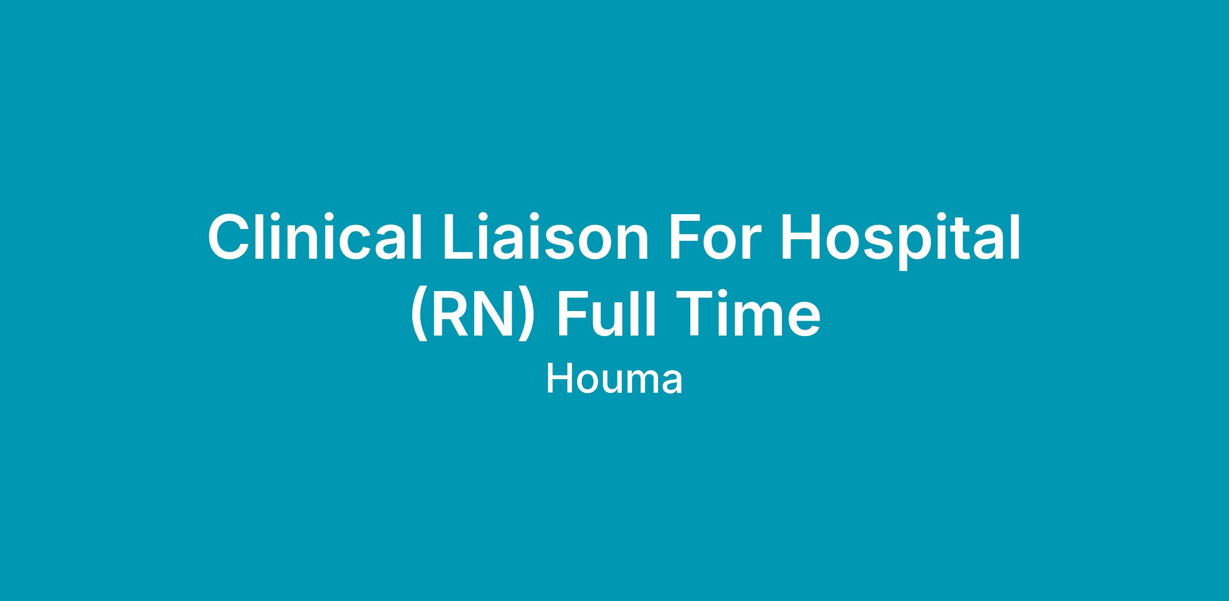 AMG Specialty Hospital - Houma is hiring a Full Time Clinical Liaison, CL responsible for working directly with Hospital Development Team, including but not limited to other Liaisons, Administrators, and Admission Coordinators. A Clinical Liaison is responsible for meeting with, communicating and providing education and support to the medical community. There are two basic parts to the CL role: evaluate the patient and educate the medical community. Clinical experience is required - RN license required.