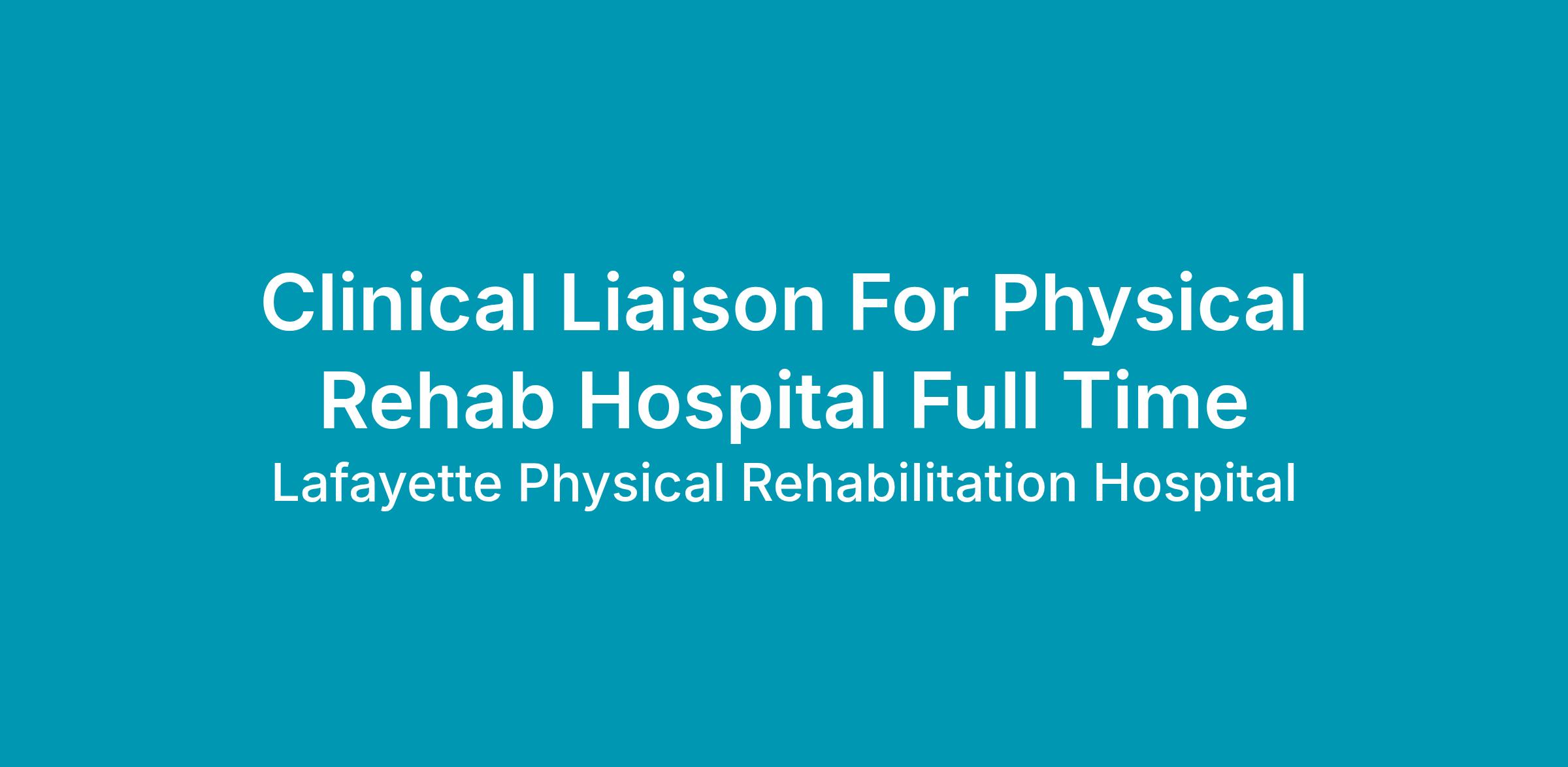AMG Physical Rehabilitation Hospital – Lafayette is seeking a Full Time Clinical Liaison who reports directly to the hospital Chief Executive Officer. They work with other Clinical/Community Liaisons, Administrators, Admission Coordinators, and the Corporate Team to help consistently increase patient census in the hospital. The average census of the hospital provides a "group performance indicator for the CL team" and the Admit-Referral report provides a "specific performance indicator for the individual CL." There are two basic parts to the CL role: evaluate the patient and educate the medical community. This position includes driving daily to and from meetings, referral sources and potential referral sources. Clinical experience is required - preferably an experienced RN, LPN or PT