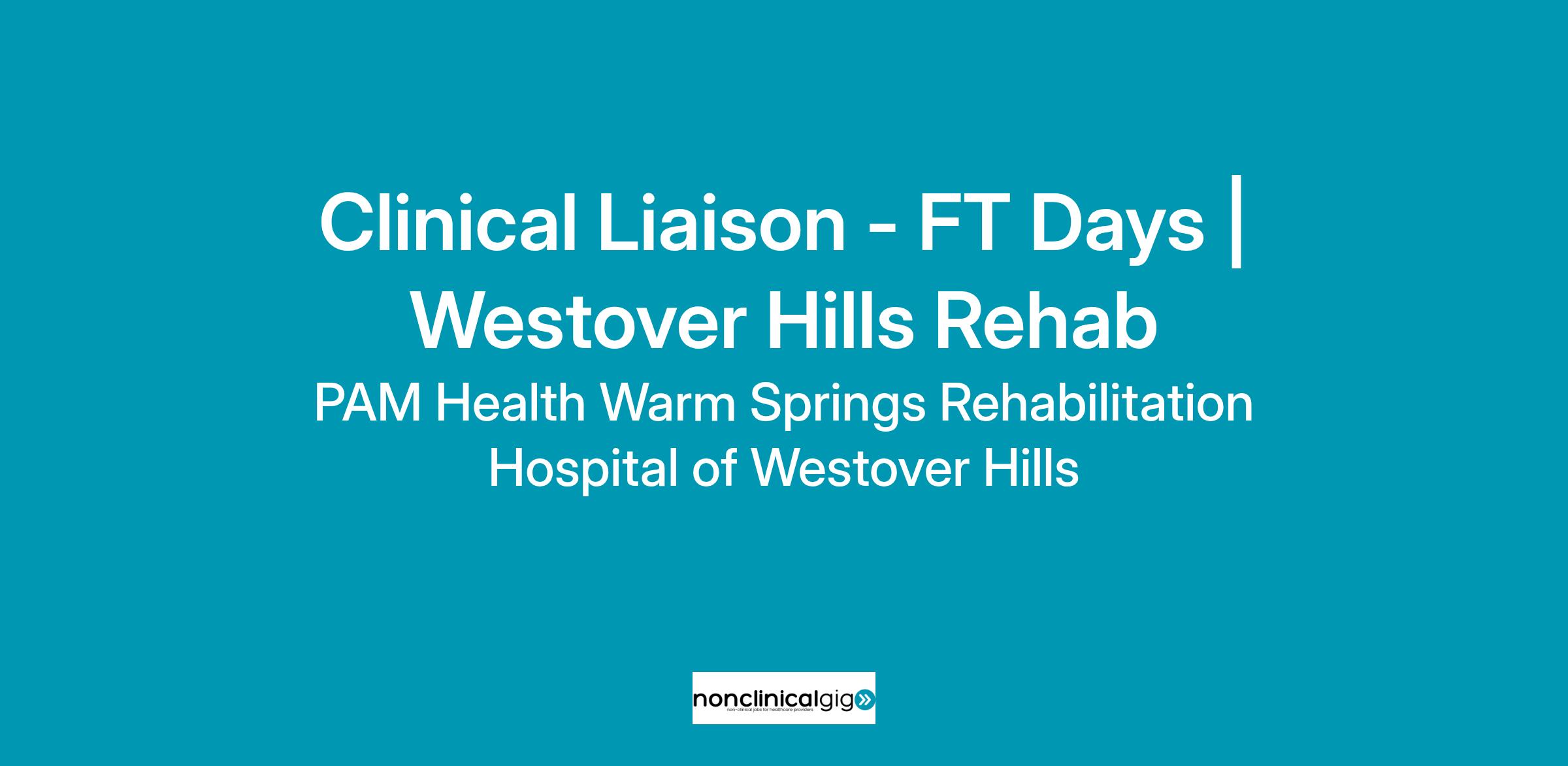 Clinical Liaison - FT Days | Westover Hills Rehab