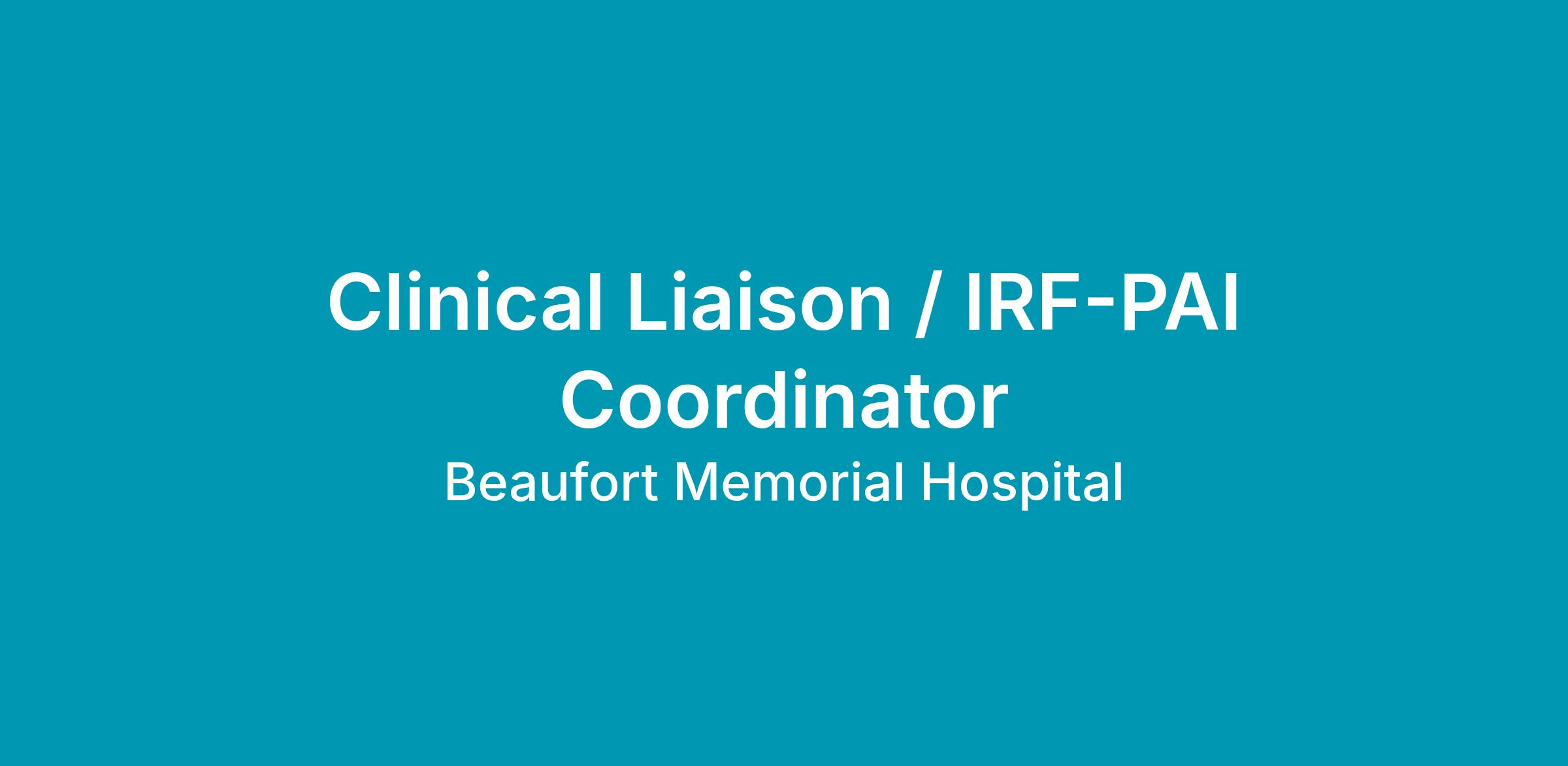 - Prior experience in a Clinical Liaison and/or IRF-PAI Coordinator role.