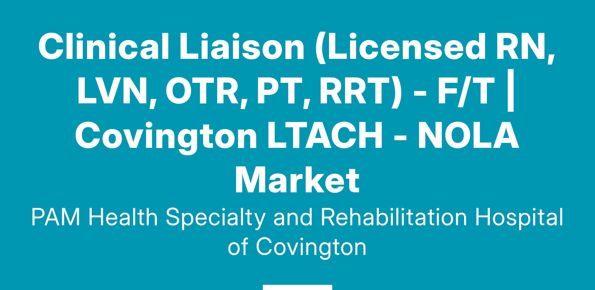 **Quality applicants will have a current license in one of the following: RN, OTR, PT, RRT or SLP with a minimum of 2 years experience in the designated field of license, preferably with rehabilitation/LTACH; We will consider substituting clinical experience for candidates possessing a robust background in healthcare sales, specifically within hospitals in the NOLA market. Ideal candidates should have a minimum of five years of experience, along with medical knowledge and established networking relationships.