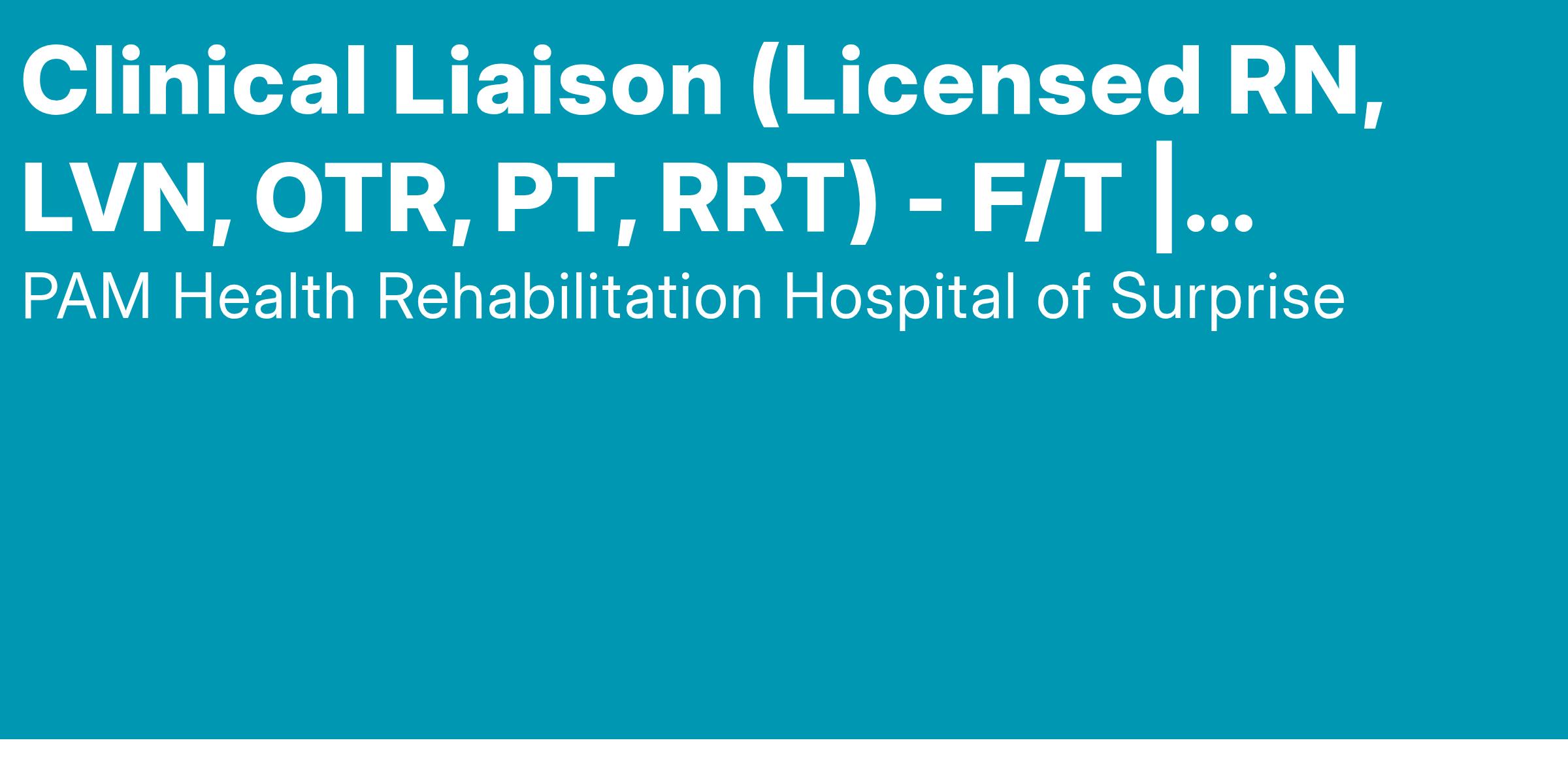 **Quality applicants will have a current license in one of the following: RN, LVN, OTR, PT, RRT or SLP with a minimum of 2 years experience in the designated field of license, preferably with rehabilitation/LTACH; We will consider substituting clinical experience for candidates possessing a robust background in healthcare sales, specifically within hospitals in the Arizona market. Ideal candidates should have a minimum of five years of experience, along with medical knowledge and established networking relationships in the STACHS sector within the West Valley.
