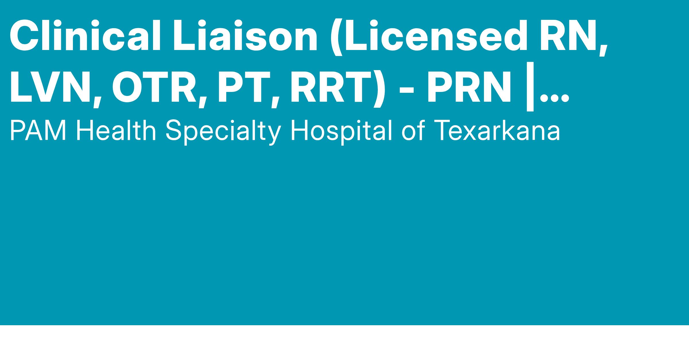 Clinical Liaison (Licensed RN, LVN, OTR, PT, RRT) - PRN | Texarkana LTACH