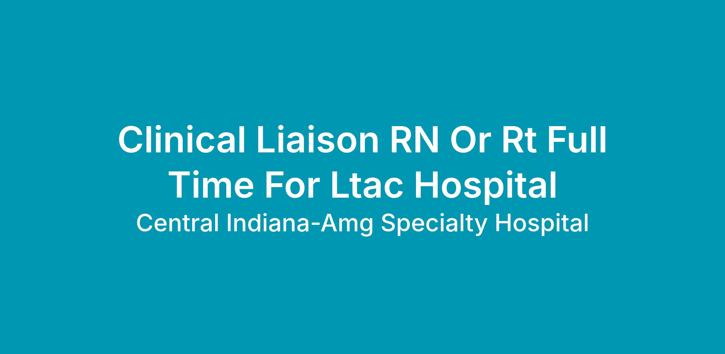 AMG Specialty Hospital - Muncie Campus seeks a Clinical Liaison (RN or RT) assigned to the Fort Wayne and Marion territory. This Clinical Liaison will work with other Clinical/Community Liaisons, Administrators, Admission Coordinators, and the Corporate Team to help consistently increase patient census in the hospital. The average census of the hospital provides a "group performance indicator for the CL team" and the Admit-Referral report provides a "specific performance indicator for the individual CL." There are two basic parts to the CL role: evaluate the patient and educate the medical community. This position includes driving daily to and from meetings, referral sources and potential referral sources. Clinical experience is required as a Registered Nurse, RN, or Respiratory Therapist, RT.