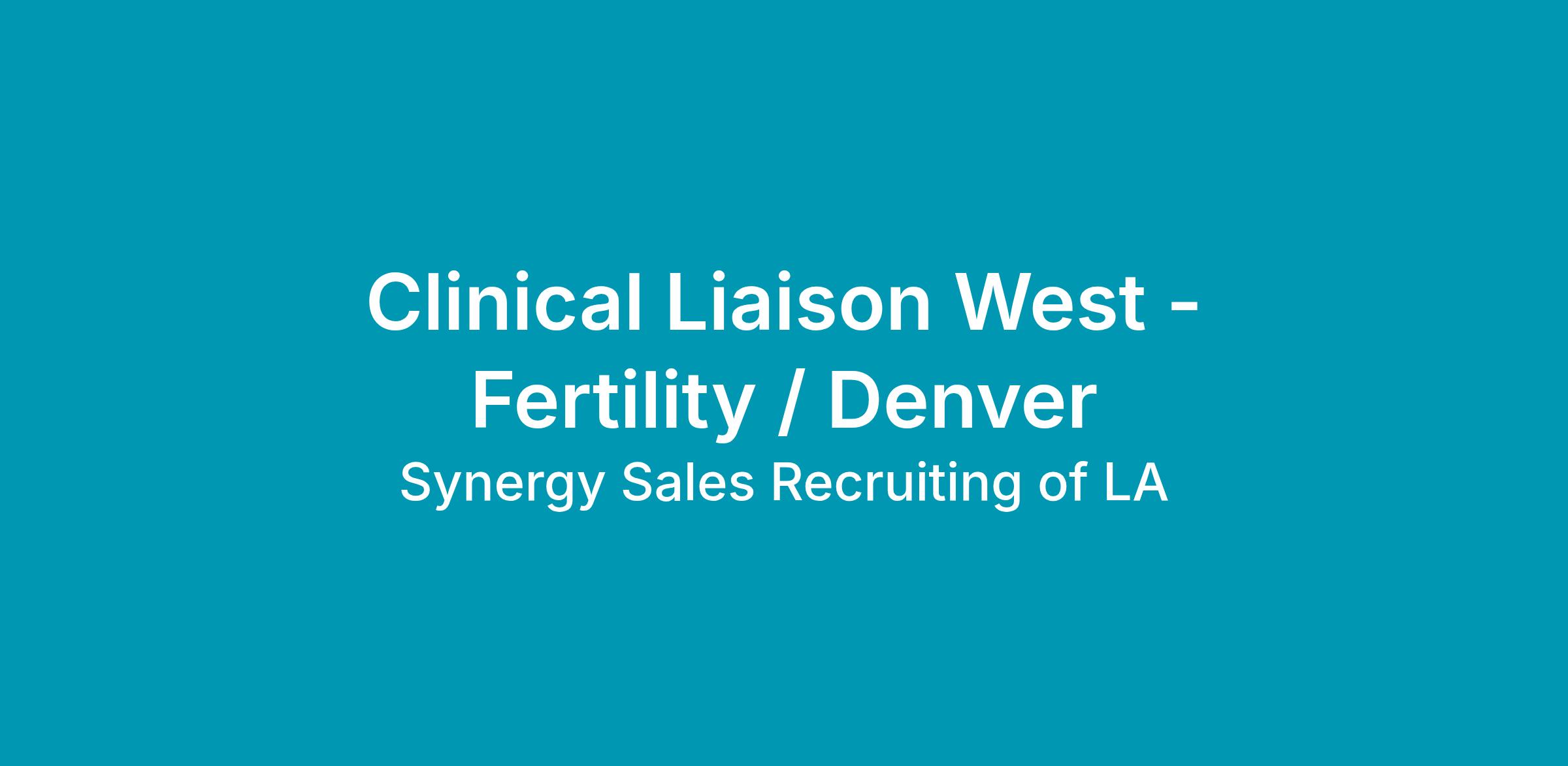 Fertility and womenβs healthcare company dedicated to putting time on the side of women, babies, and families at the healthcare moments that matter most in life is looking to fill a Clinical Liaison West opening bases out of either Los Angeles, Phoenix or Denver. This role supports the Manager, Physician Relations, B2B, and is responsible for driving revenue growth and profit, increasing sales productivity, while focusing on value proposition. The ideal candidate has a deep understanding of the customer, maintains strong relationships, drives revenue and increases customer satisfaction.
