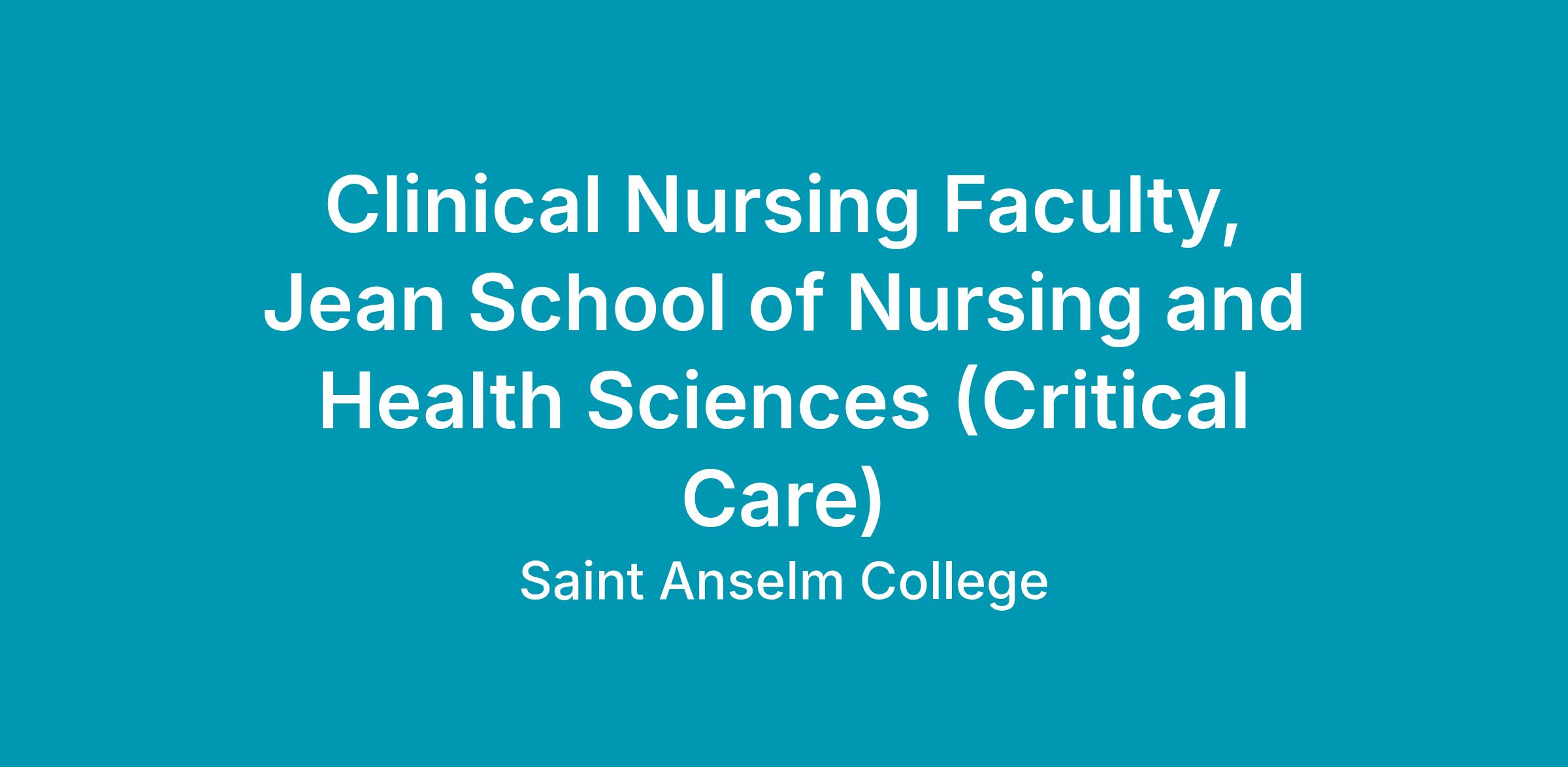The Jean School of Nursing and Health Sciences invites applications for a part-time clinical faculty position in critical care nursing to begin August 2026. The successful candidate will instruct third- or fourth-year nursing students both the clinical setting and the Sheila Evjy Center for Health Sciences Simulation. Please submit a letter of interest and resume to the attention of Dr. Carrie E. MacLeod, Interim Dean of the Jean School of Nursing and Health Sciences and Director of Undergraduate Nursing via the college website. Prior to interview three letters of recommendation and academic transcripts are also required. Review of applications will begin immediately and continue until the position is filled.