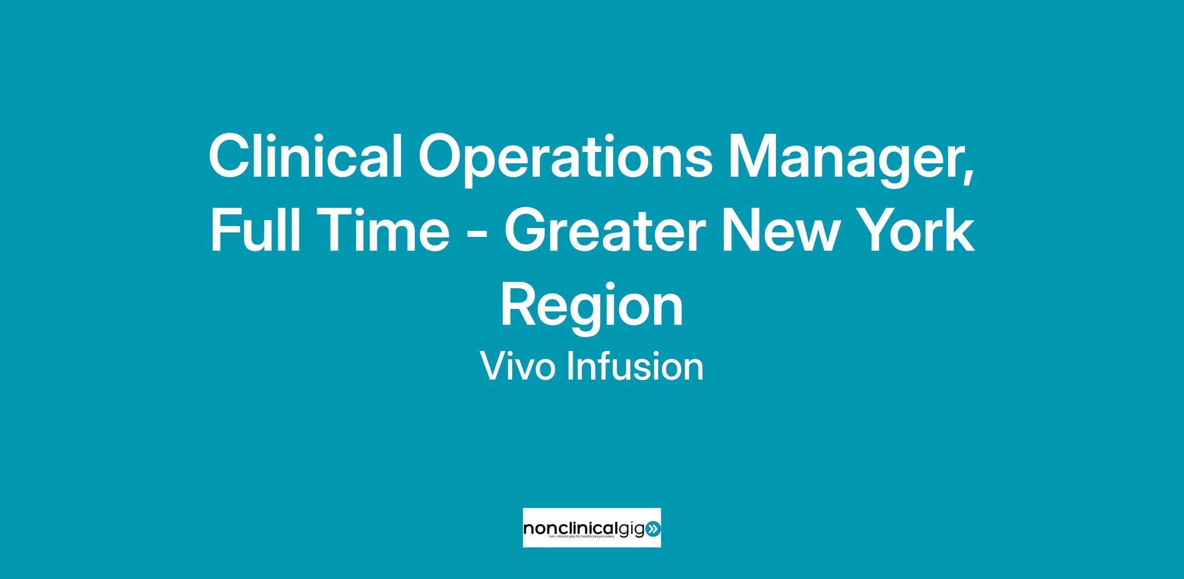 Vivo Infusion, LLC is looking for a dynamic Clinical Operations Manager with a passion for team building, leadership, and quality patient care to support our regional growth in the Greater New York Region! The area Clinic Manager will support the clinics in their region both in person and remotely. The person in this role will be responsible for overseeing all patient care activities, daily clinical operations, ensuring a safe and efficient environment while adhering to budgetary expectations and regulatory functions as outlined by the State, Federal, JCAHO, additional accreditation agencies, and Vivo company policies.