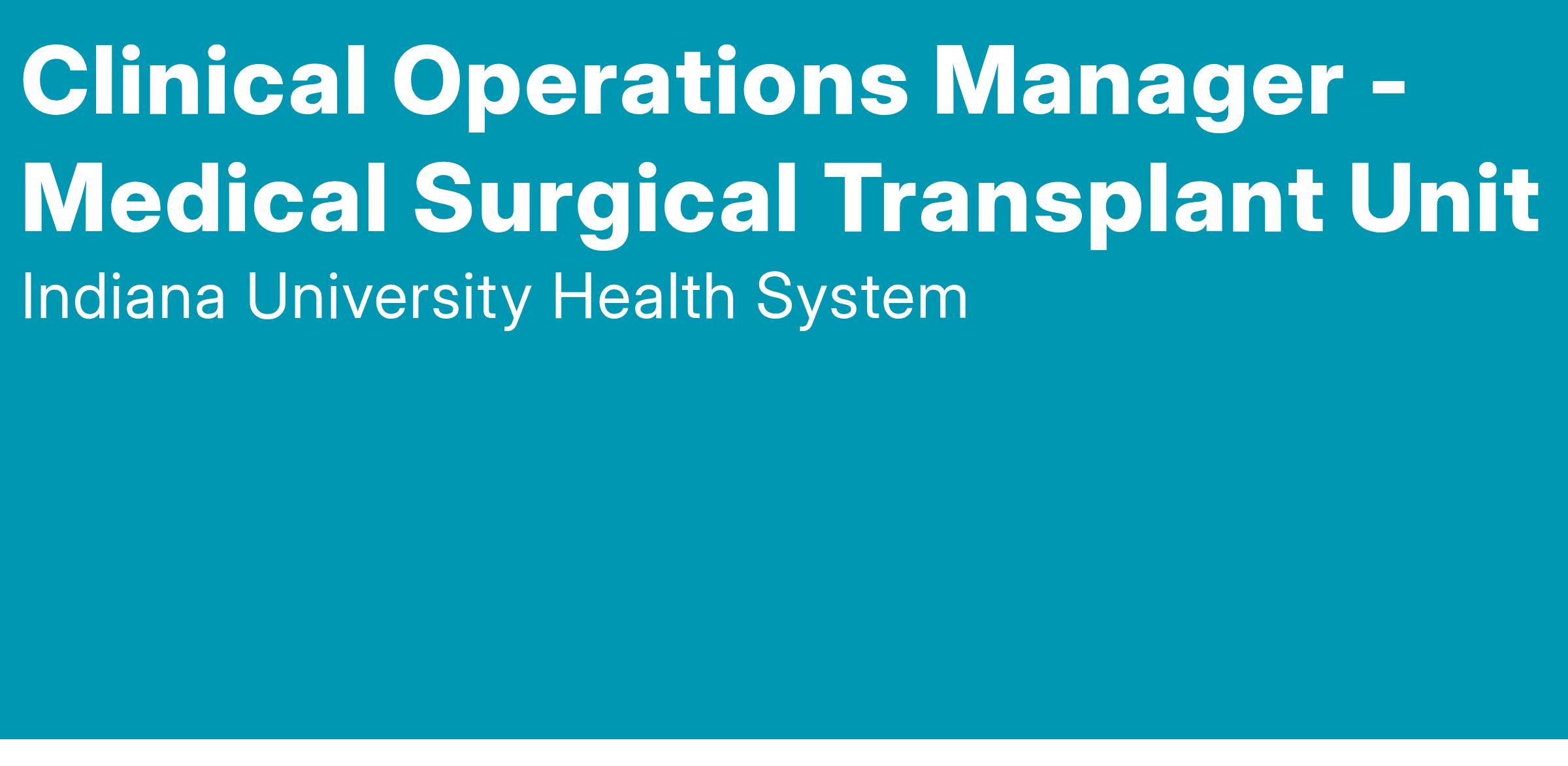 The Clinical Operations Manager will oversee day to day operations of our Medical Surgical Transplant Unit at University Hospital located in Indianapolis, IN. This leader will lead and supervise approximately 110 Direct Reports and will be responsible for planning, directing and coordinating the daily functions and workflow of assigned departmental personnel for the team. If you are looking to grow in your career, driven by compassion and excellence, and feel a connection to this purposeful work, apply today to join our highly skill Medical Surgical Transplant Unit at University Hospital!