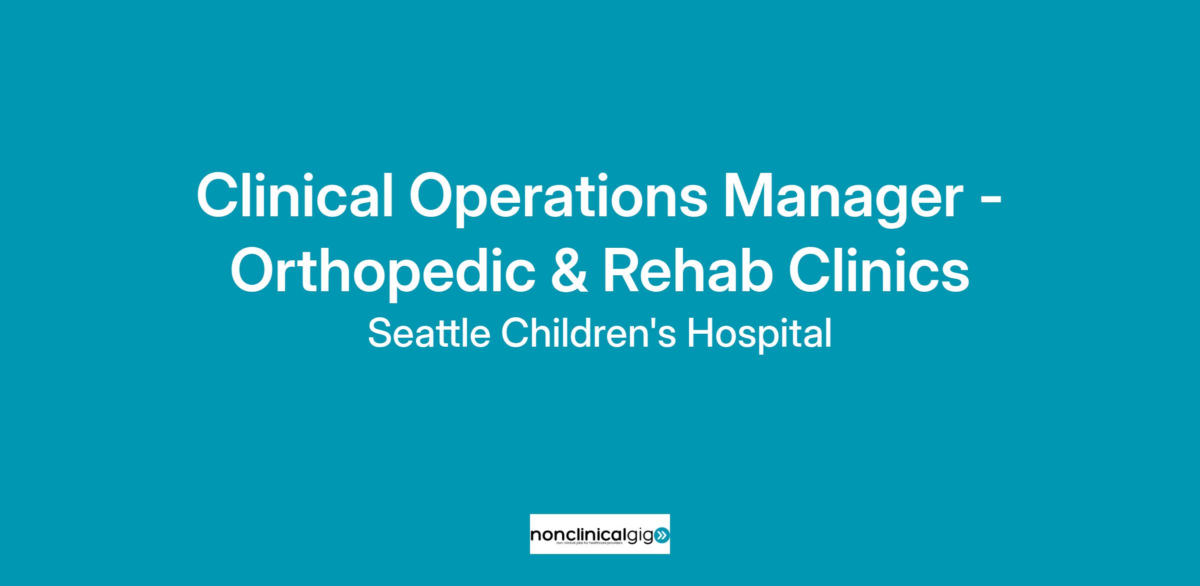 Responsible to manage the clinical operations within the Orthopedic and Rehab Clinics, meeting continuous performance improvement, customer service, financial, and delivery requirements in support of Seattle Children's mission, vision and values. In conjunction with the Clinic Chief, Director and Ambulatory CNS, this position is responsible for the implementation of strategic initiatives for Orthopedic and Ambulatory Services.