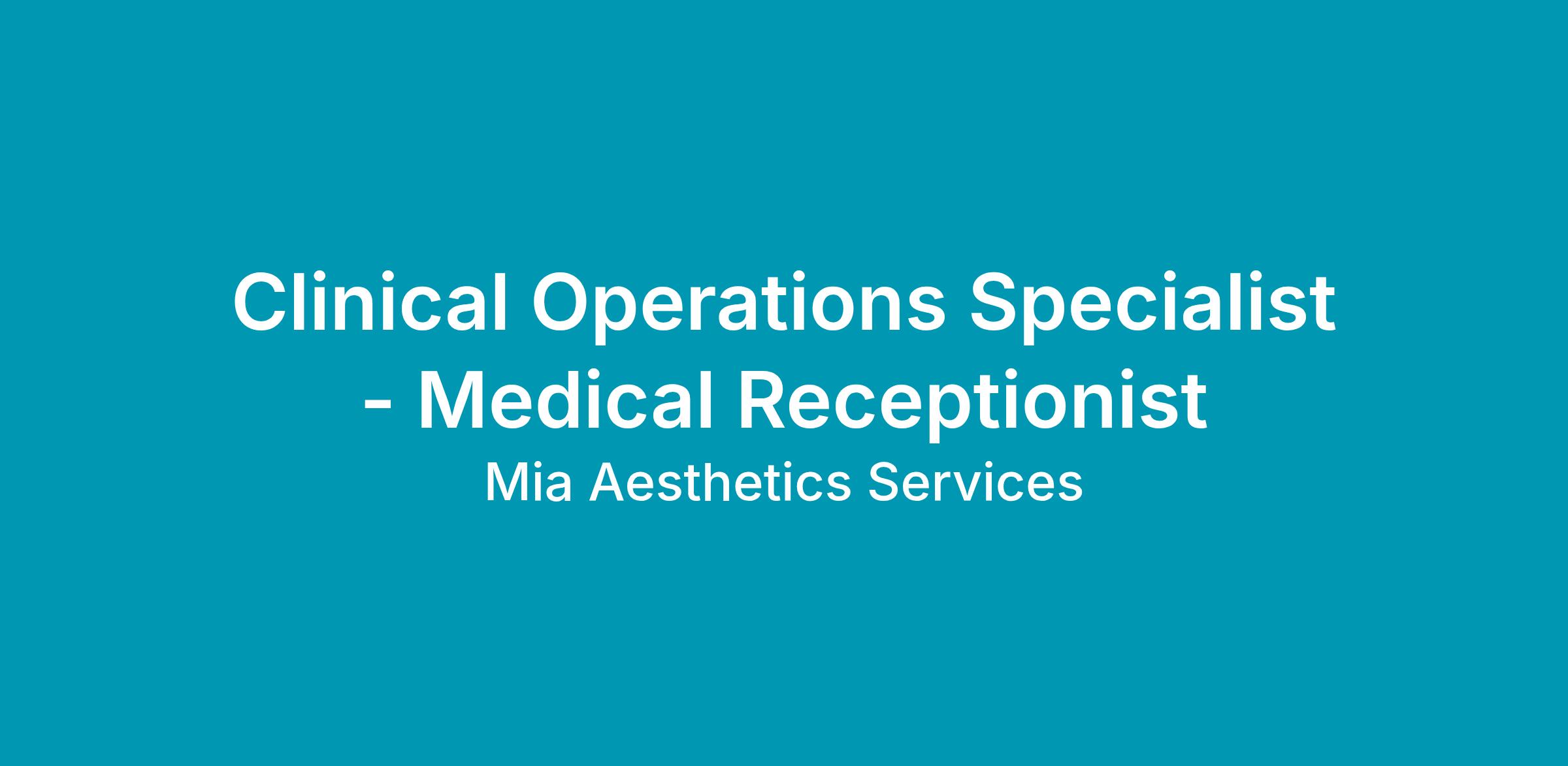 The Medical Receptionist- Clinical Operations Specialist will perform multi-faceted job responsibilities that are narrow and wide in scope to include administrative, finance, and clinical pre-operative duties.