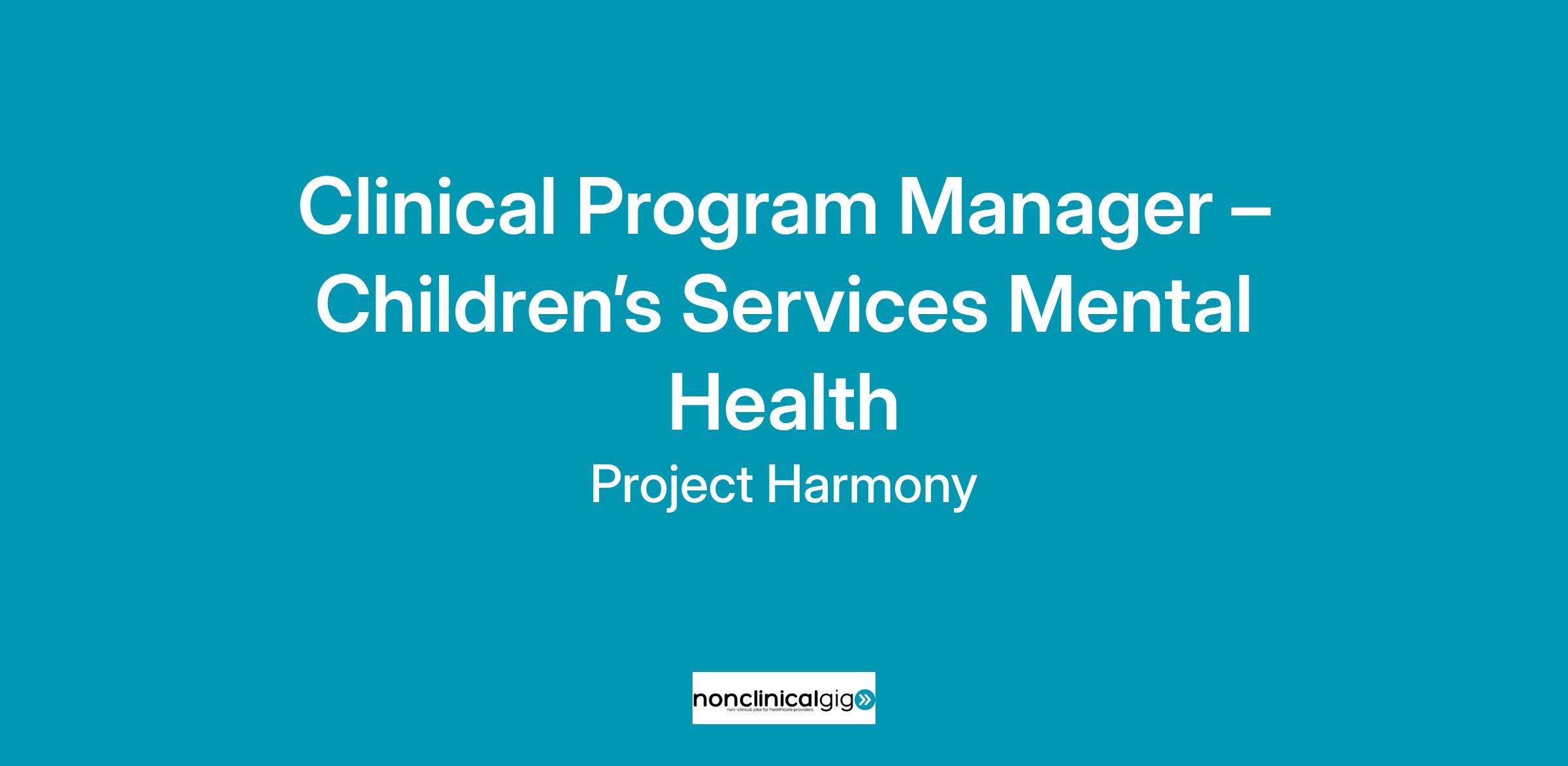 If you are looking for a place where you can make a difference in the life of a child, Project Harmony is looking for you. We are seeking an experienced and committed Clinical Program Manager to join our dynamic and innovative organization. The position provides clinical supervision of Mental Health Therapists within Project Harmony’s Children’s Services Department.