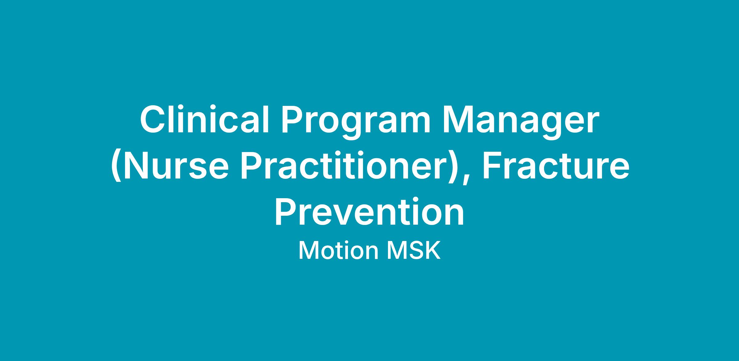 We are seeking a Clinical Program Manager (Nurse Practitioner) to serve as the cornerstone of Motion MSK’s Fracture Prevention Program. This program is dedicated to helping patients at risk for fractures by providing timely screenings and follow-up care. This program plays a vital role in ensuring patients receive the attention they need to improve their bone health and reduce future health risks.