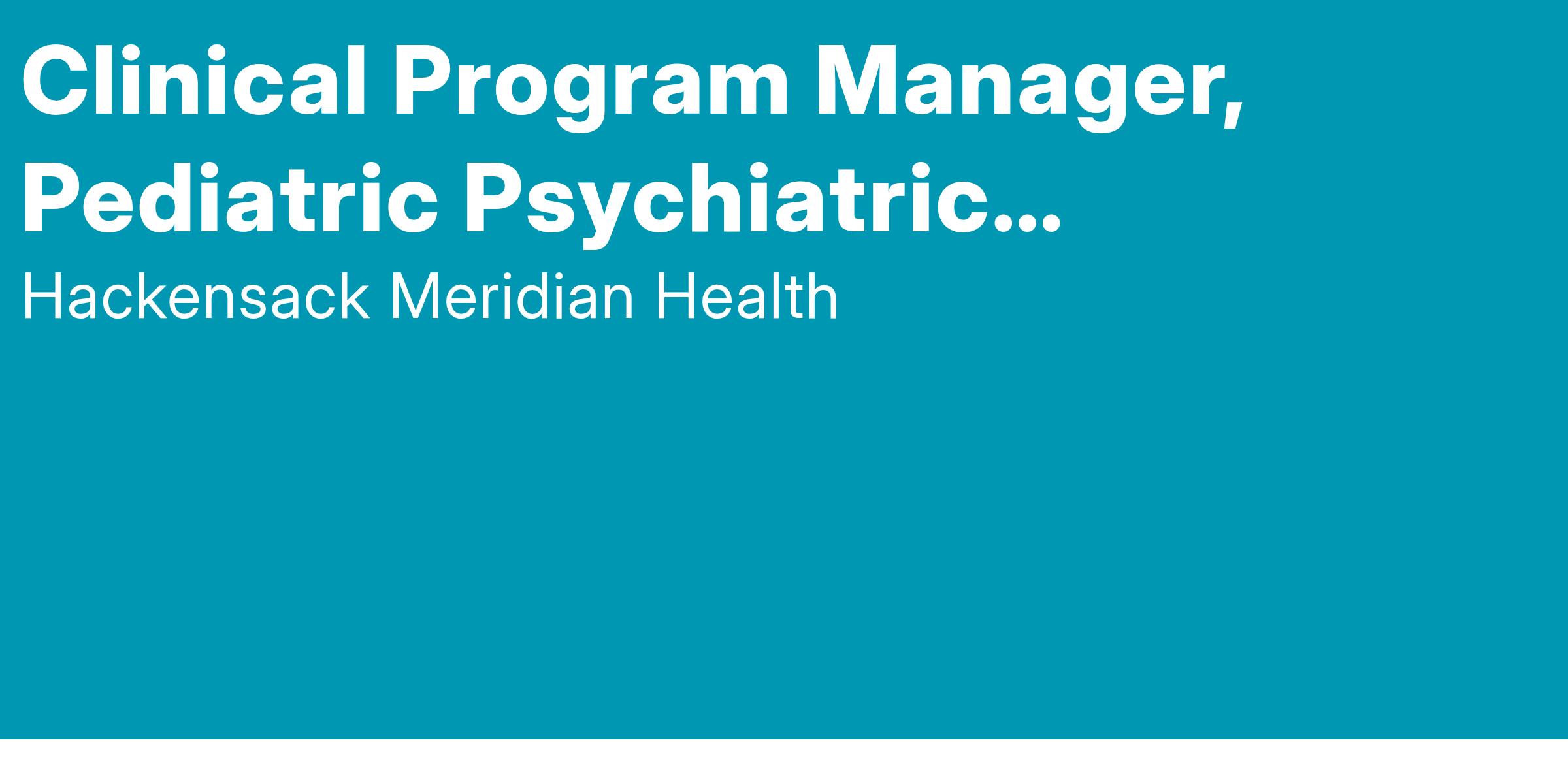 The Clinical Program Manager for the NJ Pediatric Psychiatry Collaborative (NJPPC), in partnership with the Clinical Operations Manager and Medical Director, is responsible for the daily operations of the designated NJPPC hubs throughout the state of NJ. The leader models behaviors that promote patient safety and patient/family satisfaction.