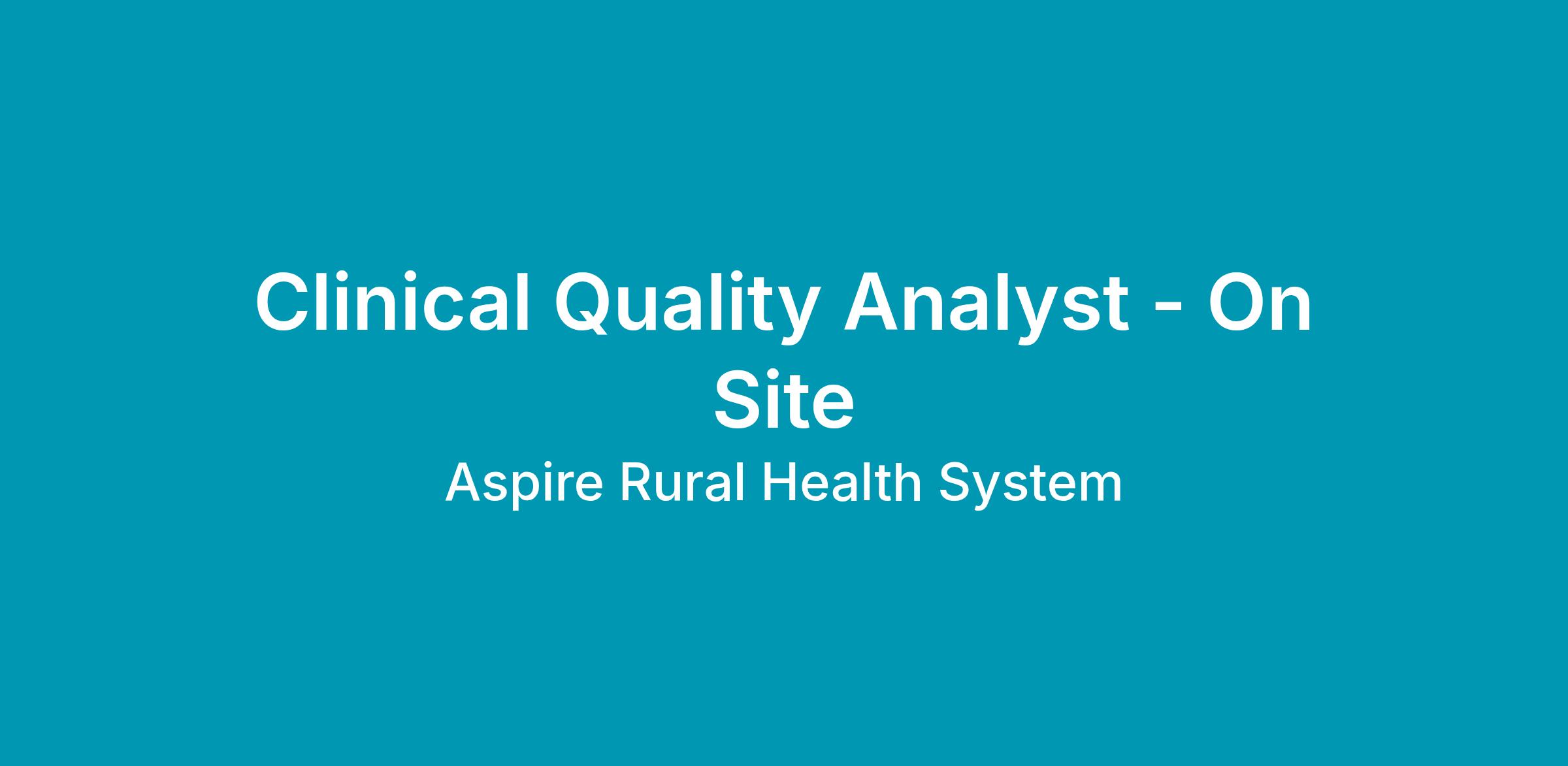 Aspire Rural Health Systems is seeking a full-time Quality Analyst in our Population Health department. We are looking for those with a great attitude to join our dedicated team of healthcare professionals constantly striving to provide the highest quality of services for our patients.