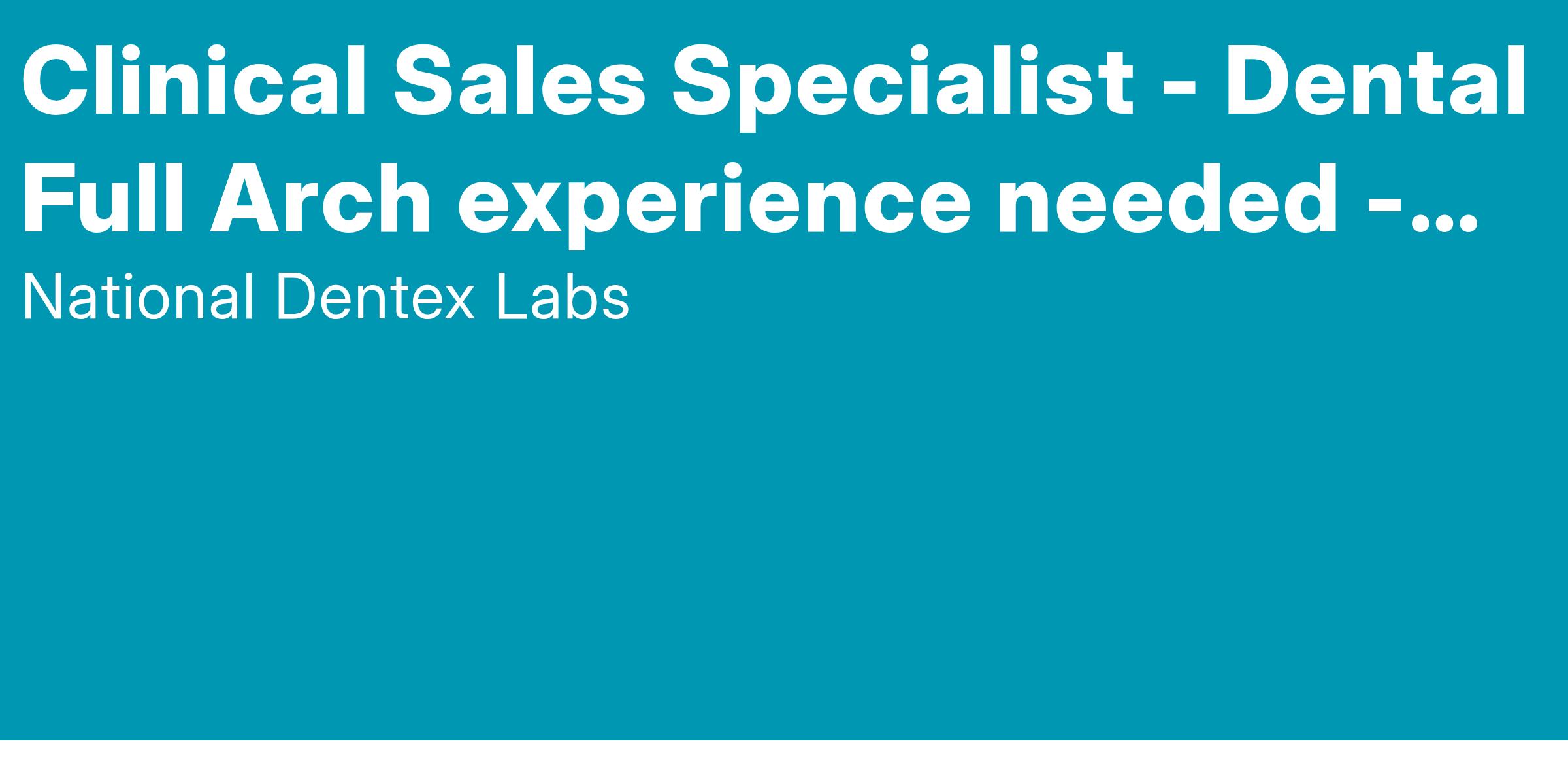 Join National Dentex - a leading healthcare organization specializing in the dental industry. We offer a full spectrum of specialized products, services, and technologies to address any dental restoration need. Currently, we have 50+ labs throughout the country. Our team is growing, and we are hiring a number of key positions within our organization including this opportunity for a Clinical Sales Specialist - Full Arch. The ideal candidate should reside in Central Florida and must have full arch dental experience. This is a remote position.