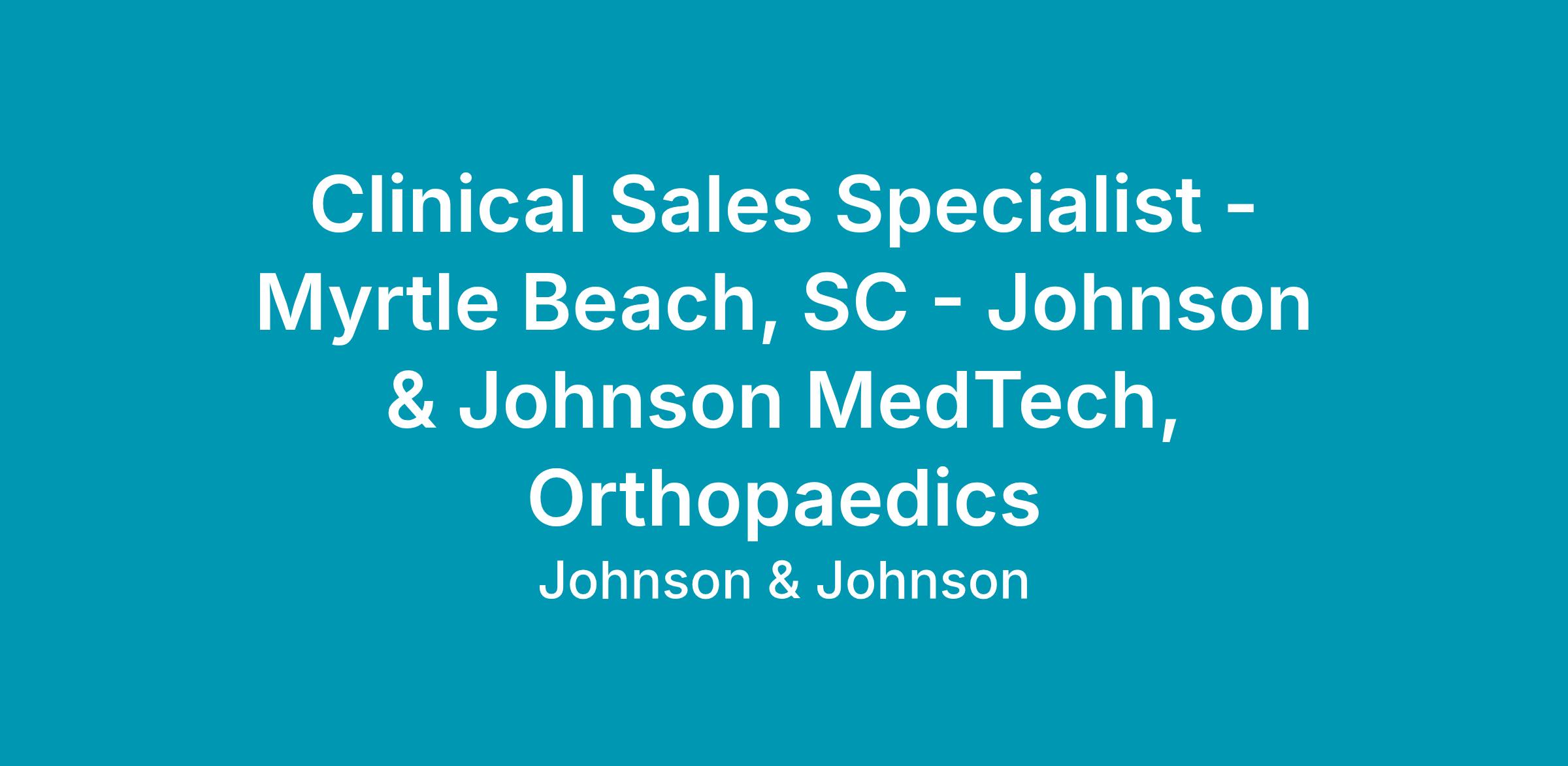 We are searching for the best talent for a Clinical Sales Specialist located in Myrtle Beach, SC.