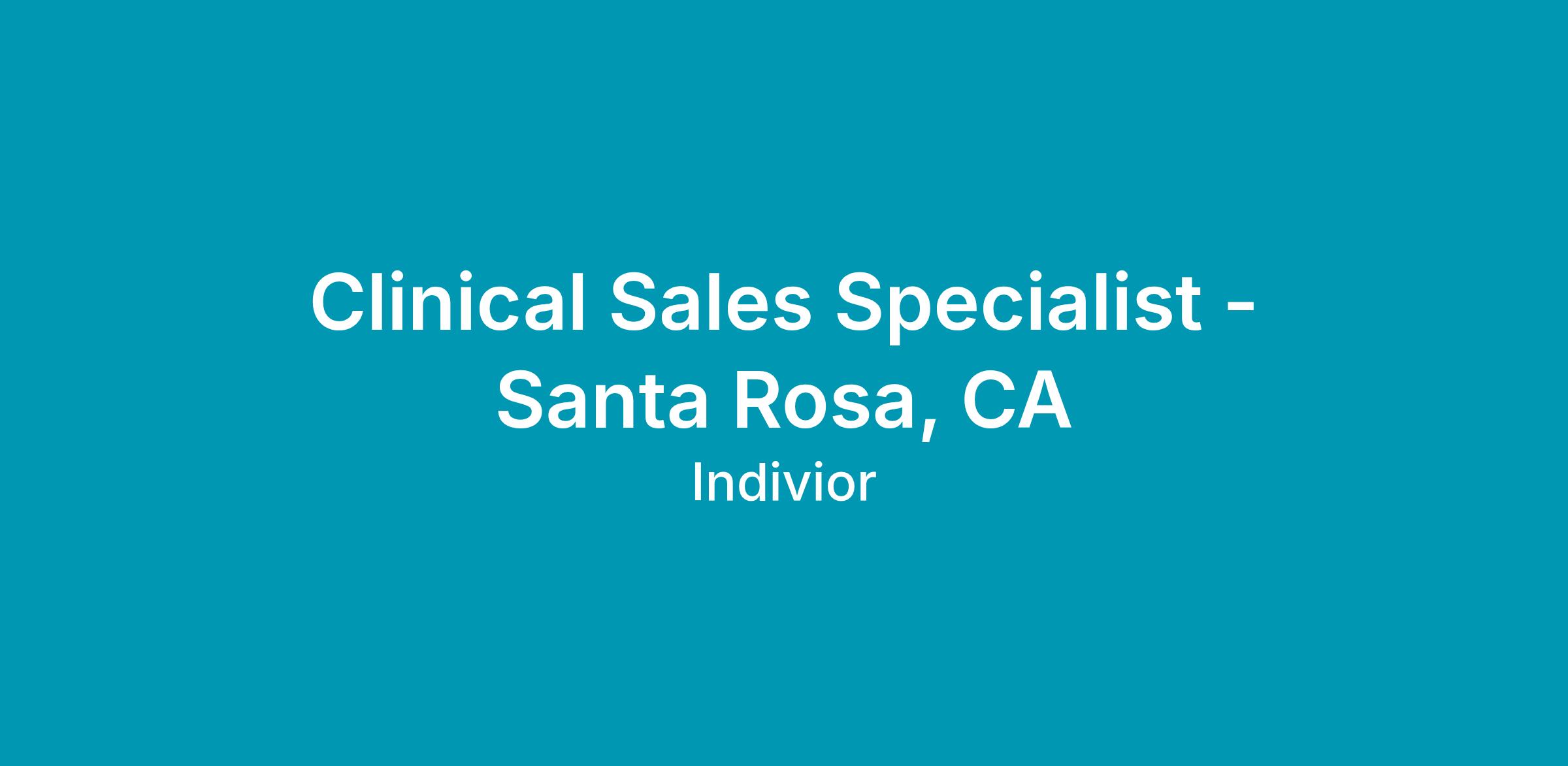 Clinical Sales Specialist - Santa Rosa, CAIndivior is a global pharmaceutical company working to help change patients' lives by developing medicines to treat opioid use disorder (OUD). Our vision is that all patients around the world will have access to evidence-based treatment for OUD and we are dedicated to transforming OUD from a global human crisis to a recognized and treated chronic disease. Building on its global portfolio of OUD treatments, Indivior has a pipeline of product candidates designed to expand on its heritage in this category. Headquartered in the United States in Richmond, VA, Indivior employs over 700 individuals globally. Visit www.indivior.com to learn more. Connect with Indivior on LinkedIn by visiting www.linkedin.com/company/Indivior.