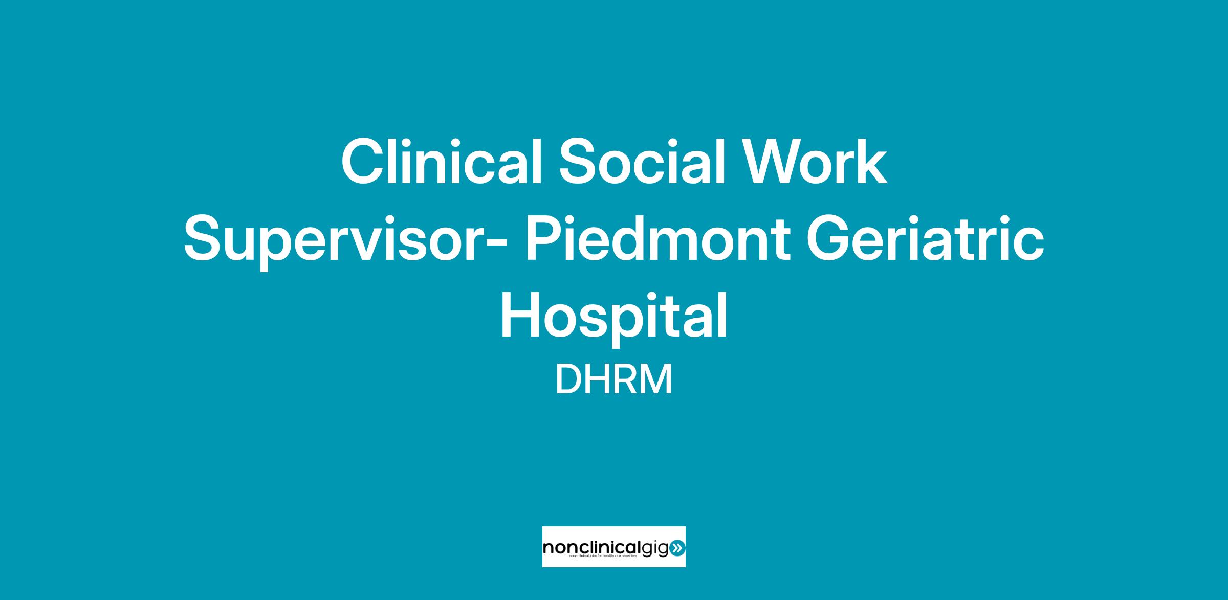 Title: Clinical Social Work Supervisor- Piedmont Geriatric Hospital