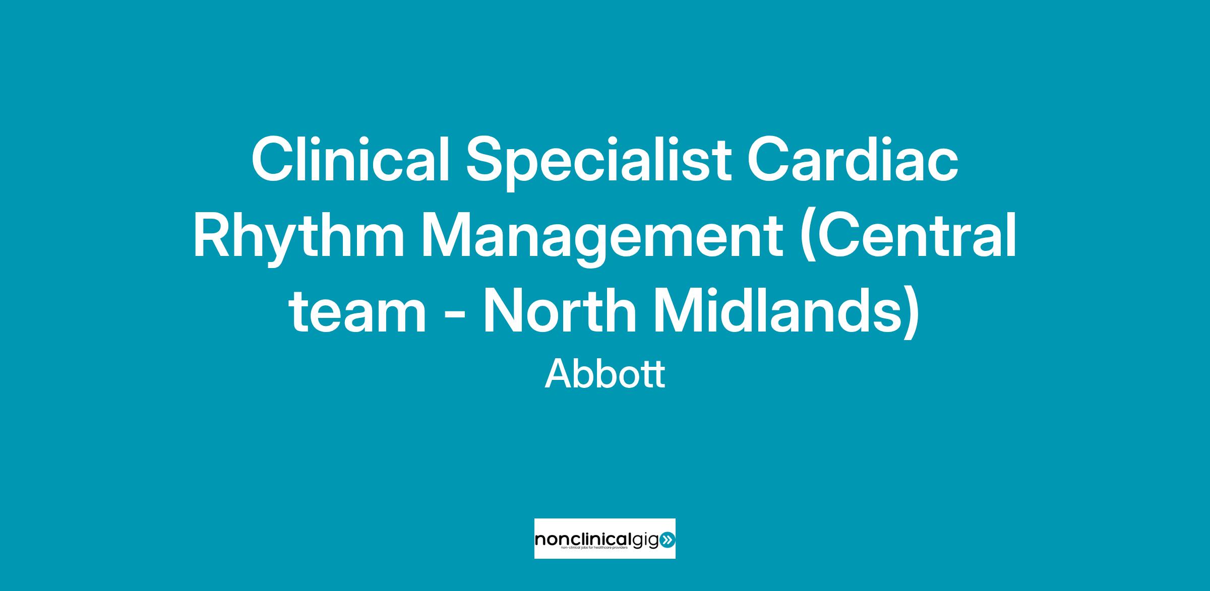 We are recruiting for a Clinical Specialist to join our Central UK team, responsible for supporting the Cardiac Rhythm Management (CRM) technology lines by providing expert clinical consultation, teaching and support on the use of the CRM portfolio of products and its appropriate application in the clinical setting in the assigned territory within our Central region (ideal candidate location is North Midlands - Birmingham/Stoke).