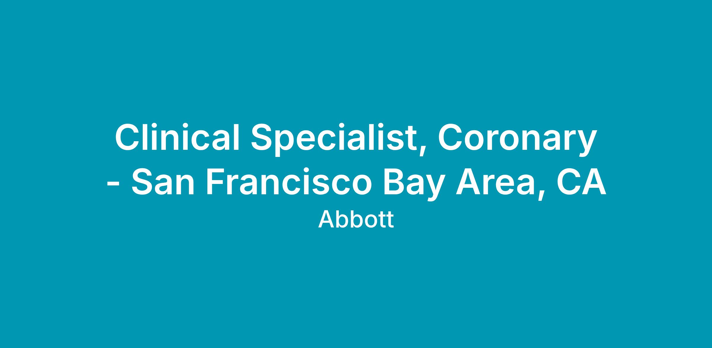 We currently have an opportunity for a Clinical Specialist, Coronary in San Francisco Bay Area, CA. The Sr. Clinical Specialist will primarily be responsible for case planning, case support coverage, and product pull- through throughout the designated territory, and throughout the Region as needed. The Clinical Specialist will promote Vascular products through education, service and training of customers in the hospital setting. The Clinical Specialist will provide clinical education and sales support in order to assist in achieving projected sales goals, increasing sales revenues within assigned product lines, and increasing market share. This position will report to the Regional Sales Director.