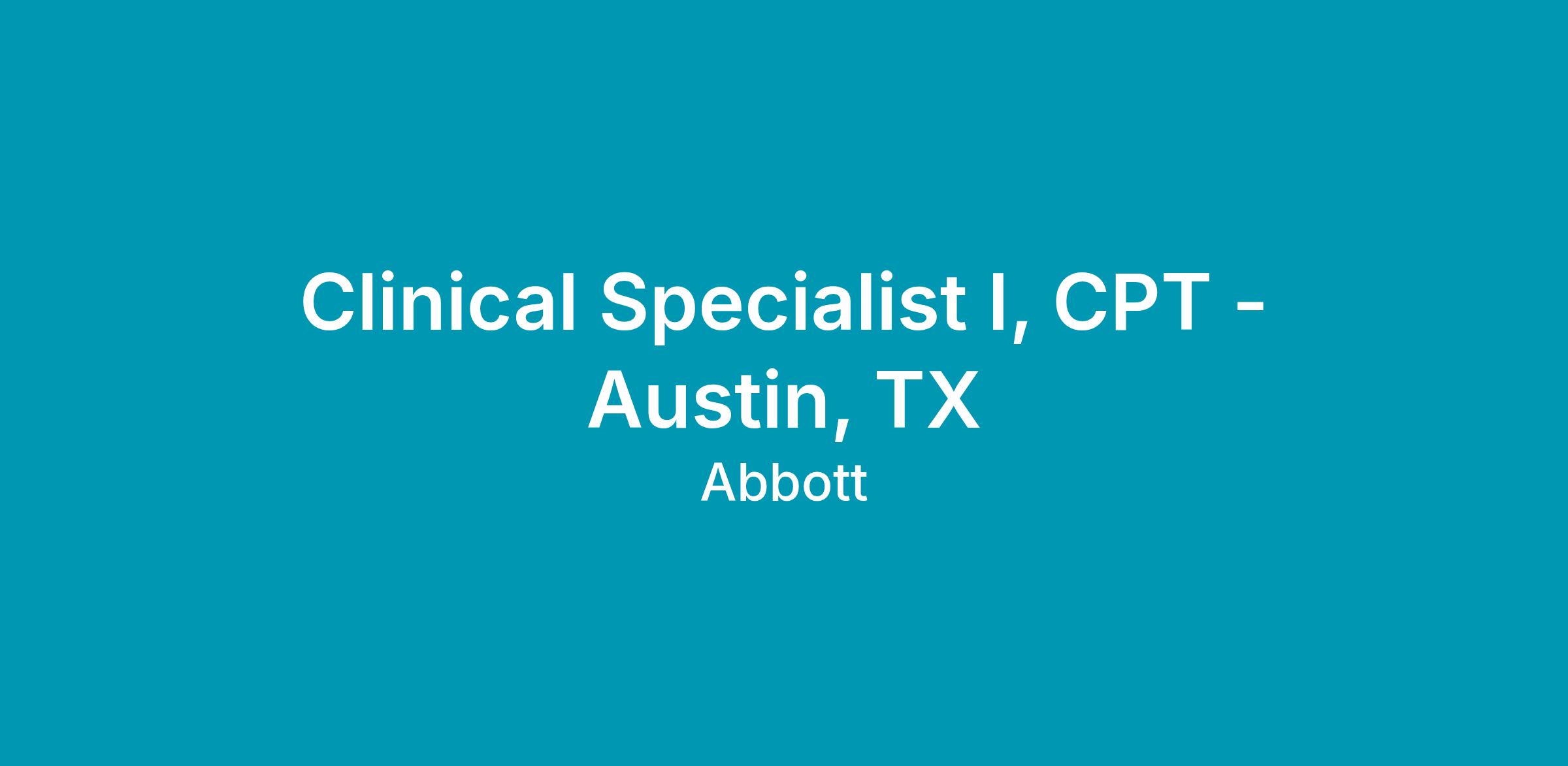 Clinical Specialist I, CPT - Austin, TX