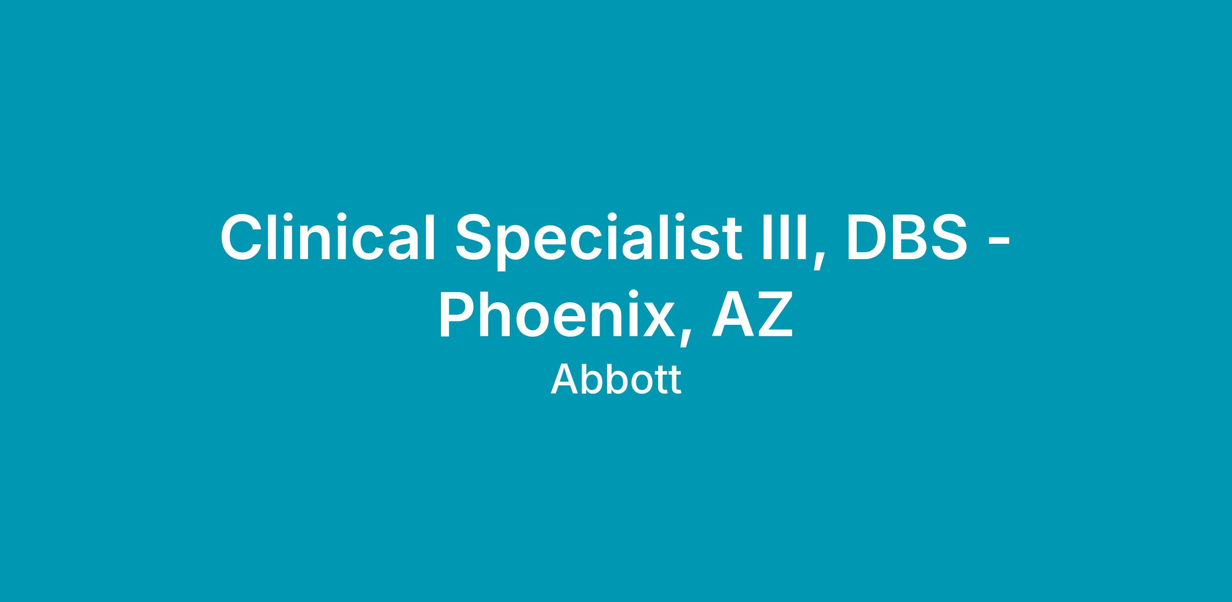 As a member of the sales territory team, the Clinical Specialist III, DBS, will demonstrate a comprehensive understanding of principles, concepts, practices and standards related to the therapies in which they support. The incumbent will work in a highly matrixed, geographically diverse environment under general direction with clinical and sales teammates to identify and capitalize on sales opportunities by creating competency, comfort, and expertise with Abbott therapies among physicians, support staff and customers. The incumbent will develop solutions to complex problems, perform work that involves a high degree of independence, and exercise sound judgment in planning, organizing, and executing work while continually seeking to improve territory efficiency.