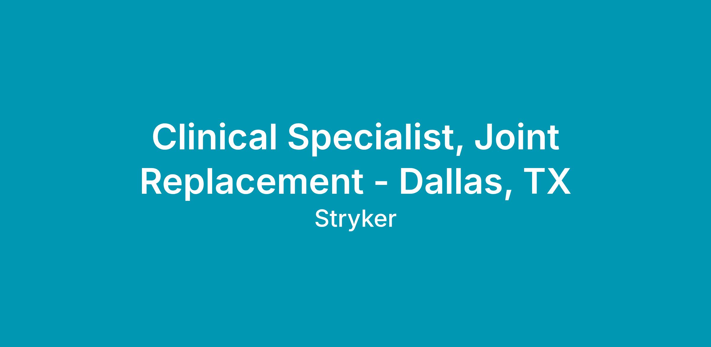 Clinical Specialist, Joint Replacement - Dallas, TX