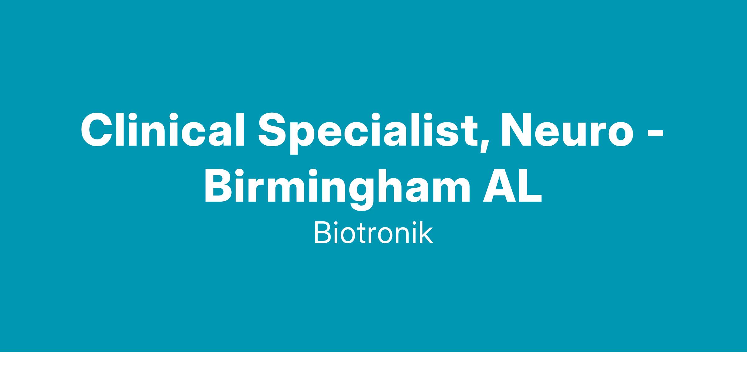 BIOTRONIK Neuro is looking to add Clinical Specialist to our Neuromodulation Segment in Birmingham, AL (also recruiting for additional locations, see website). As a member of the clinical support team, you'll be responsible for providing technical clinical expertise and support of the sales process to colleagues, current customers and/or potential customers. Works under general direction with clinical and sales teammates to identify and capitalize on sales opportunities by creating competency, comfort and expertise with all Biotronik NRO among physicians, support staff and customers within assigned geography. Performs work that involves a high degree of independence. Exercises independent judgment in planning, organizing, and performing work. Seeks to continually improve territory efficiency.