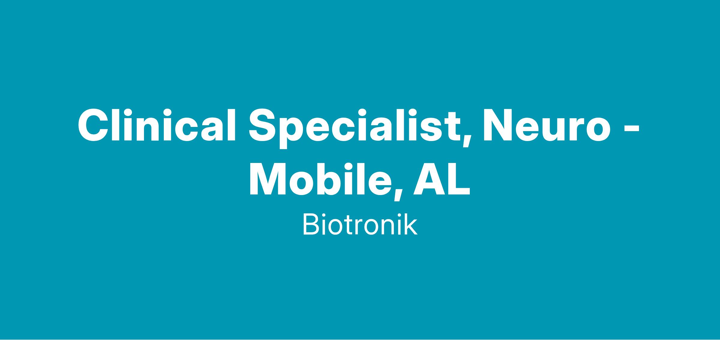 BIOTRONIK Neuro is looking to add Clinical Specialist to our Neuromodulation Segment in Mobile, AL (also recruiting for additional locations, see website). As a member of the clinical support team, you'll be responsible for providing technical clinical expertise and support of the sales process to colleagues, current customers and/or potential customers. Works under general direction with clinical and sales teammates to identify and capitalize on sales opportunities by creating competency, comfort and expertise with all Biotronik NRO among physicians, support staff and customers within assigned geography. Performs work that involves a high degree of independence. Exercises independent judgment in planning, organizing, and performing work. Seeks to continually improve territory efficiency.
