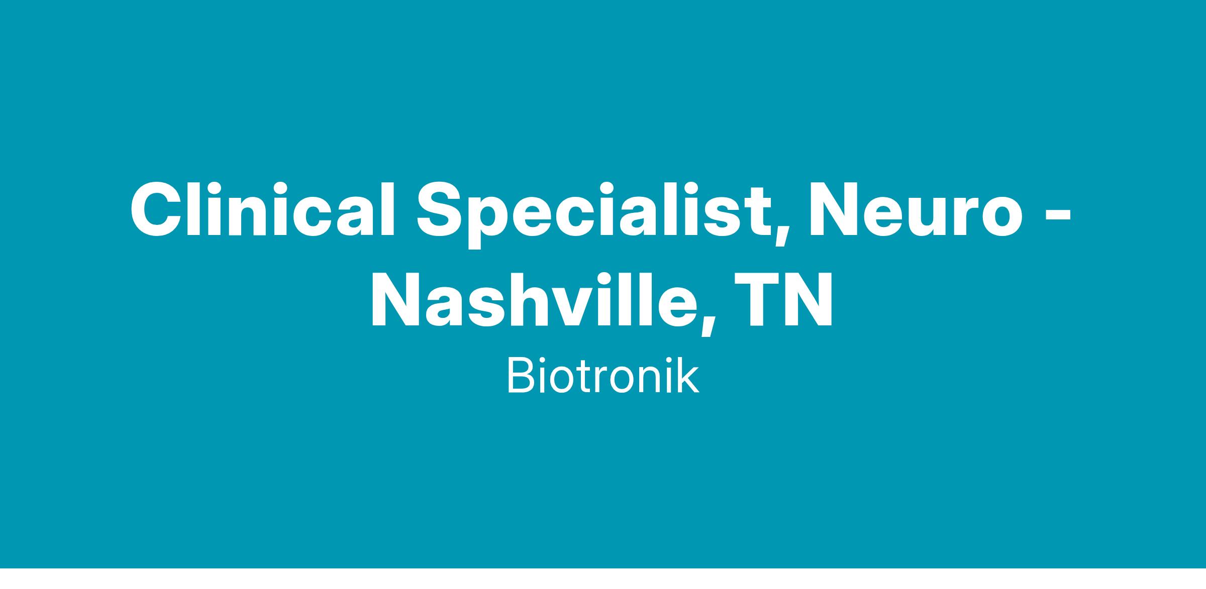 BIOTRONIK Neuro is looking to add Clinical Specialist to our Neuromodulation Segment in Nashville, TN (also recruiting for additional locations, see website). As a member of the clinical support team, you'll be responsible for providing technical clinical expertise and support of the sales process to colleagues, current customers and/or potential customers. Works under general direction with clinical and sales teammates to identify and capitalize on sales opportunities by creating competency, comfort and expertise with all Biotronik NRO among physicians, support staff and customers within assigned geography. Performs work that involves a high degree of independence. Exercises independent judgment in planning, organizing, and performing work. Seeks to continually improve territory efficiency.