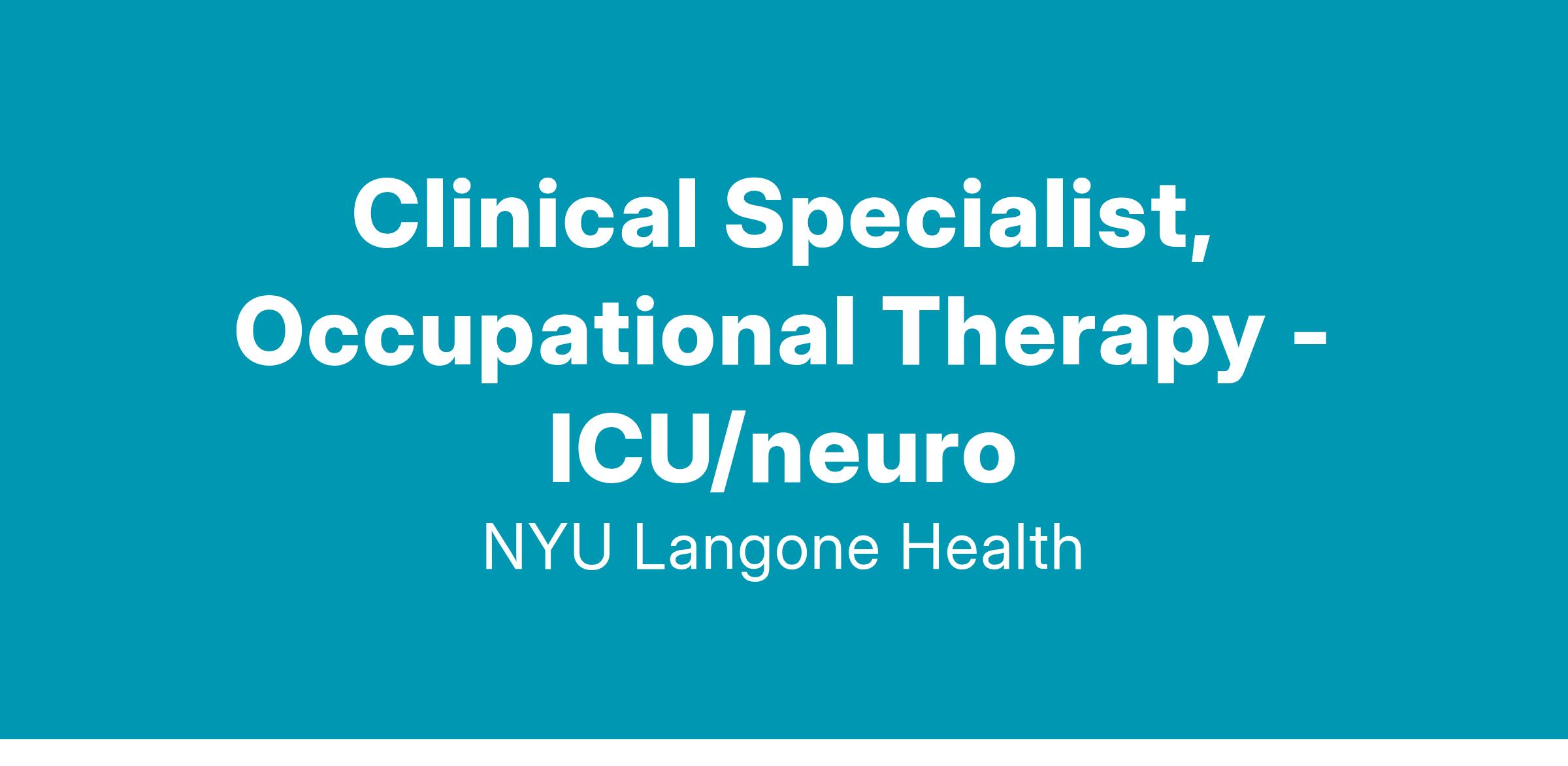 We have an exciting opportunity to join our team as a Clinical Specialist, Occupational Therapy - ICU/neuro.