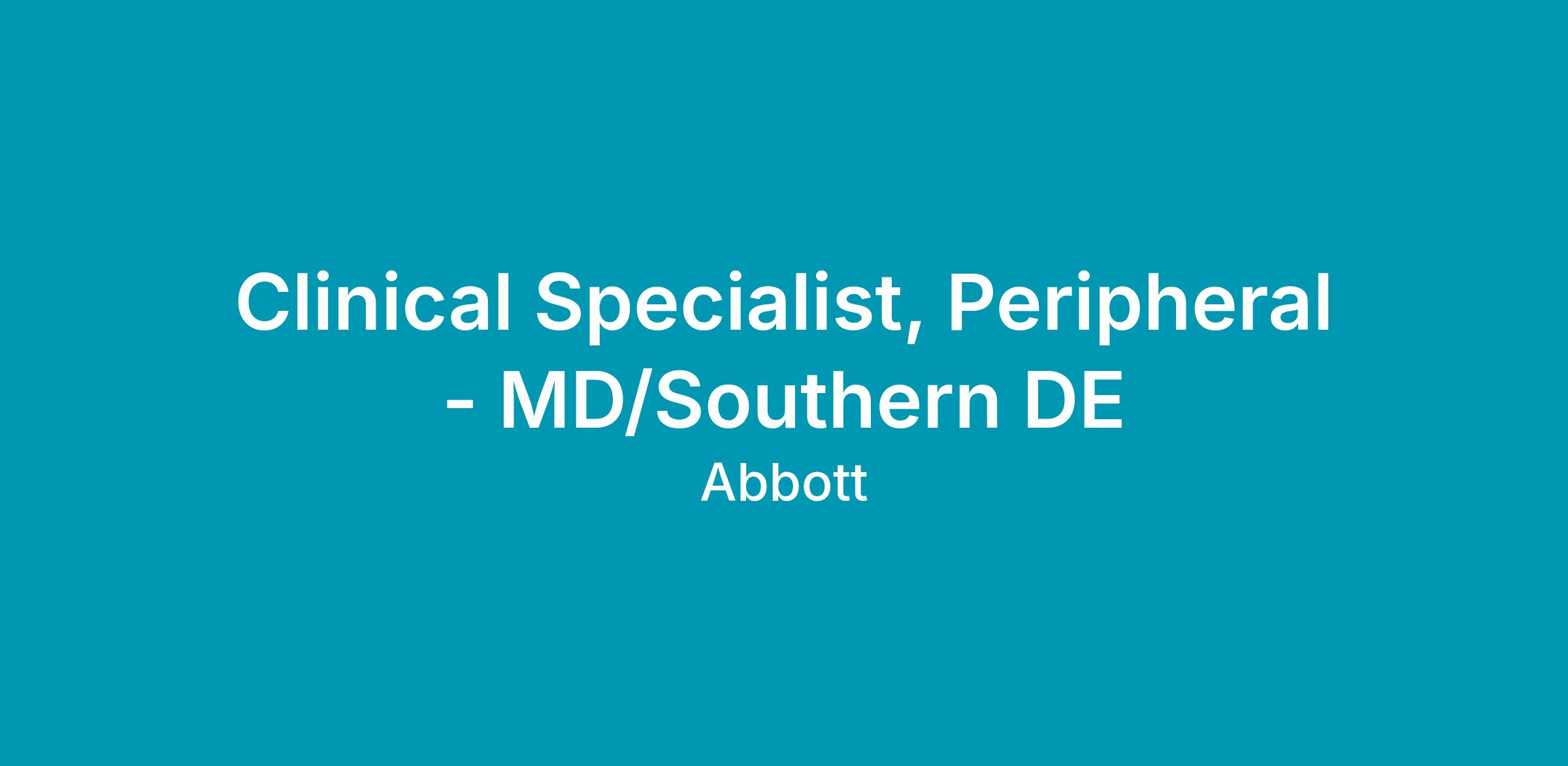 We currently have an opportunity for a Clinical Specialist, Peripheral, in MD/Southern DE. The Clinical Specialist will primarily be responsible for case planning, case support coverage, and product pull- through throughout the designated territory, and throughout the Region as needed. The Clinical Specialist will promote Vascular products through education, service and training of customers in the hospital setting. The Clinical Specialist will provide clinical education and sales support in order to assist in achieving projected sales goals, increasing sales revenues within assigned product lines, and increasing market share. This position will have a heavy focus on Vessel Closure.