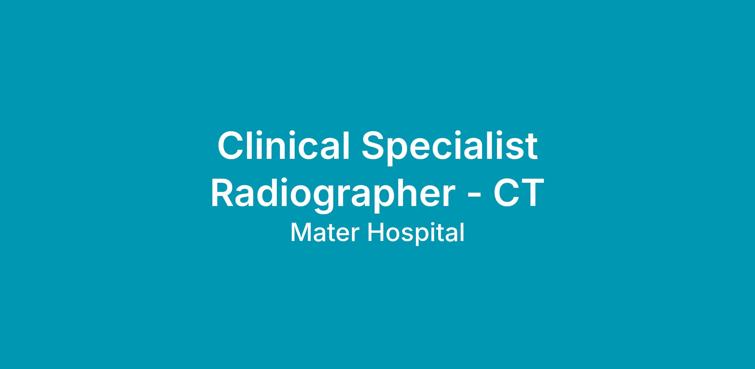 Reporting directly to the Radiography Services Manager, the position of Clinical Specialist Radiographer – CT has responsibility to manage, lead, guide and supervise Radiography staff in the optimal delivery of service on a day to day basis. The Clinical Specialist Radiographer CT will have the ability to manage in a rapidly changing environment and possess a willingness to undertake additional duties as may be assigned from time to time.